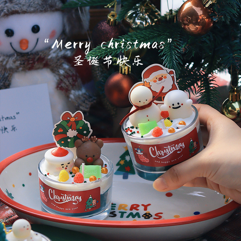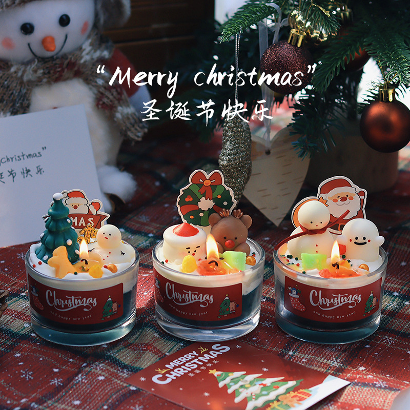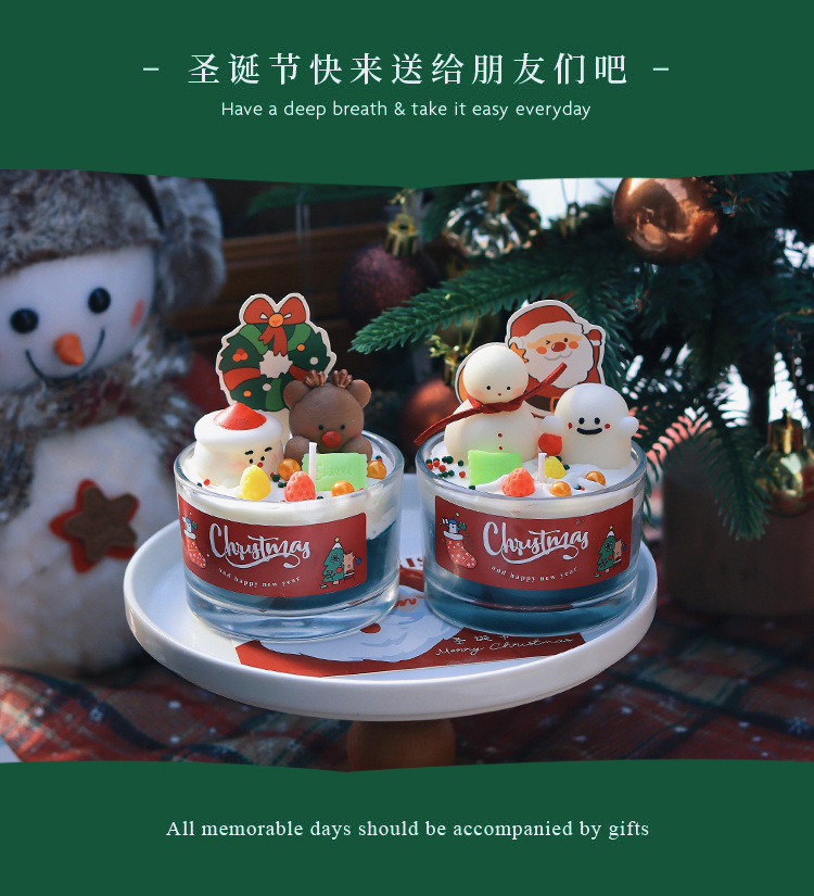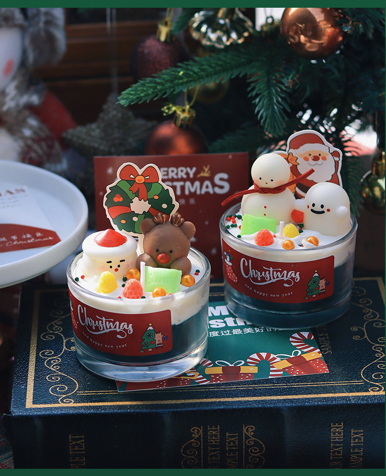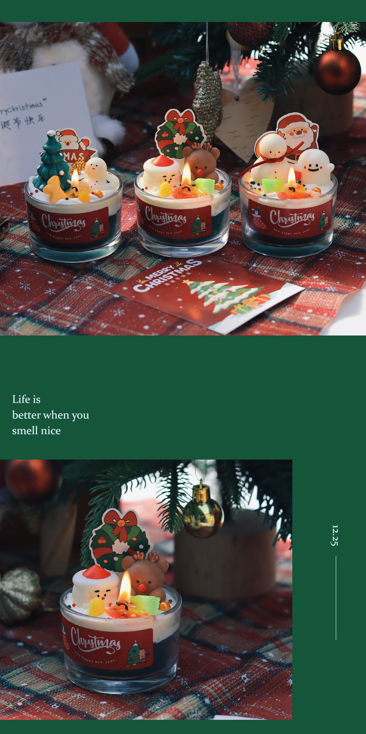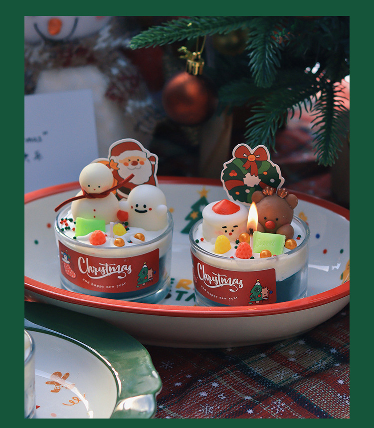 圣诞节香薰蜡烛家居卧室香氛装饰摆件生日礼物圣诞树雪人麋鹿跨境
