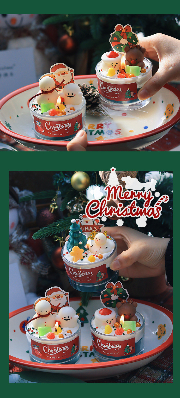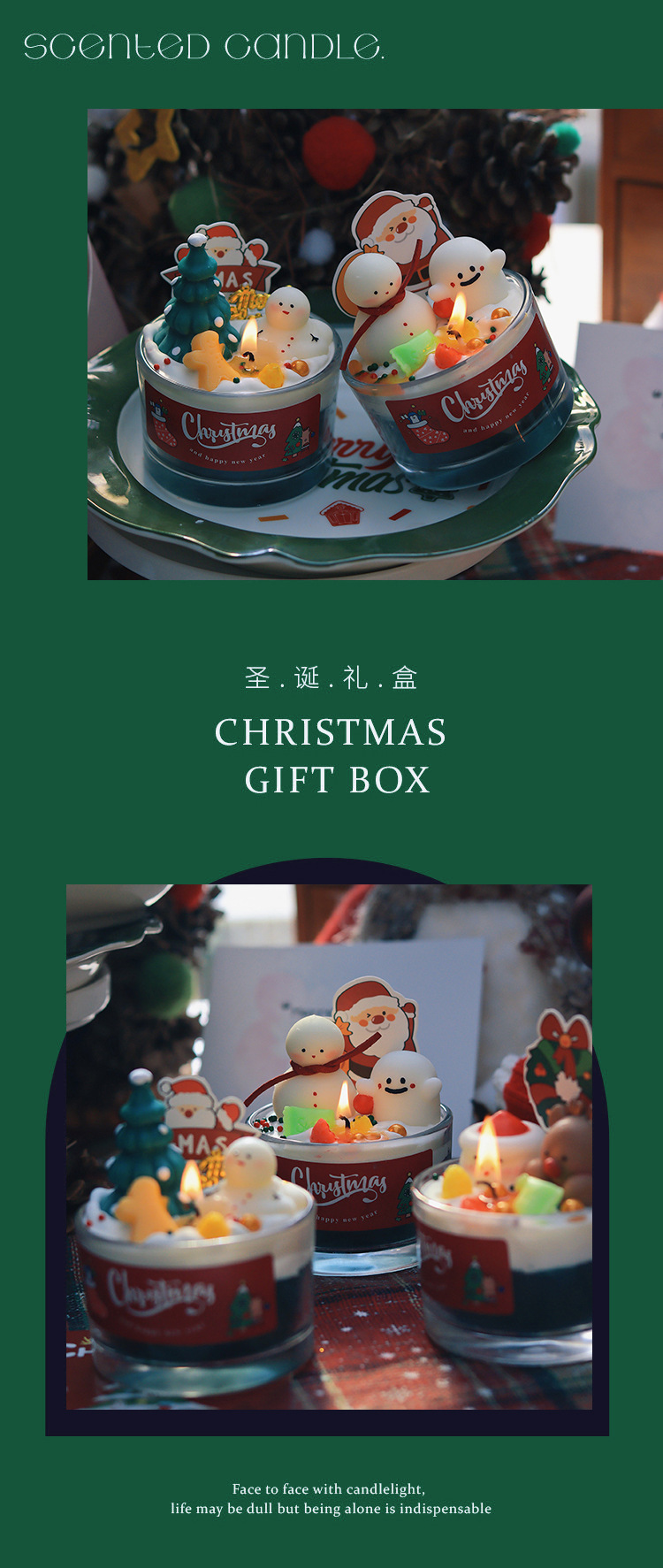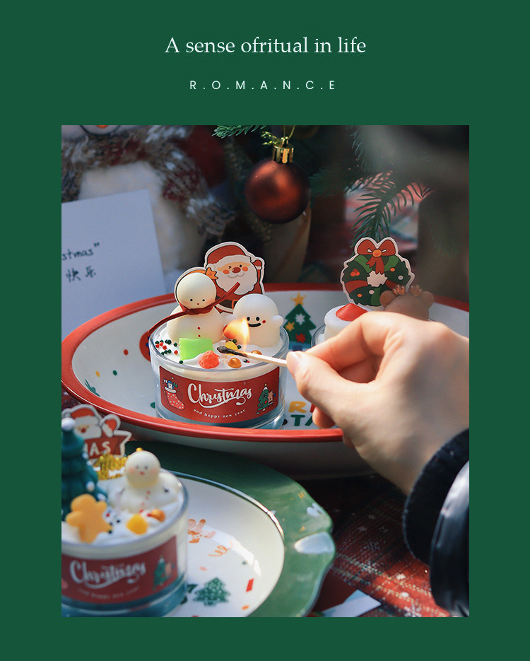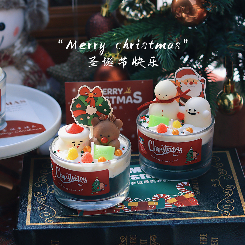 圣诞节香薰蜡烛家居卧室香氛装饰摆件生日礼物圣诞树雪人麋鹿跨境
