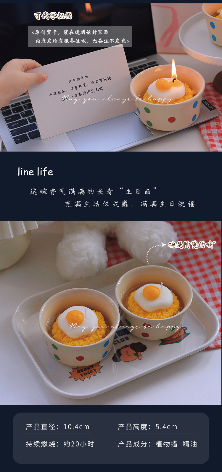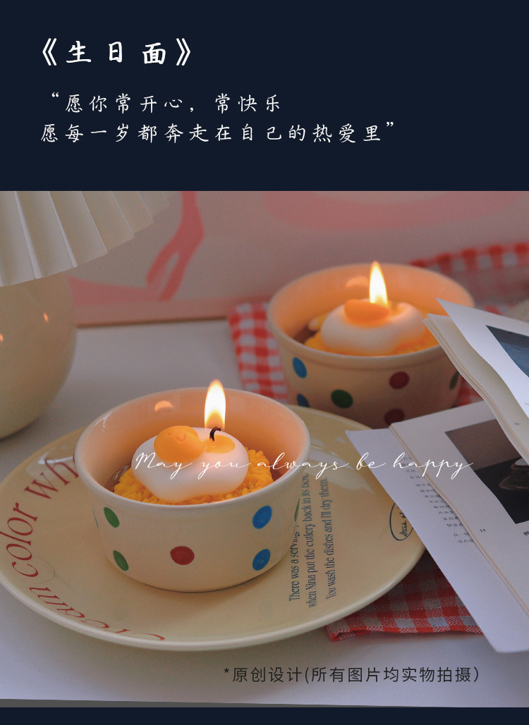 《生日面》创意香薰蜡烛大豆蜡可爱鸡蛋面生日礼物伴手礼跨境批发