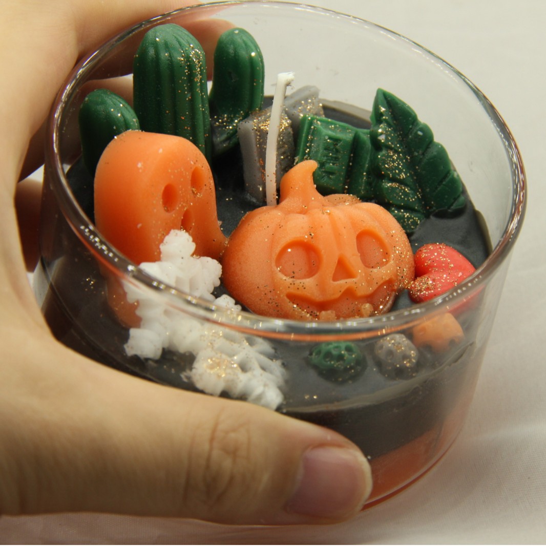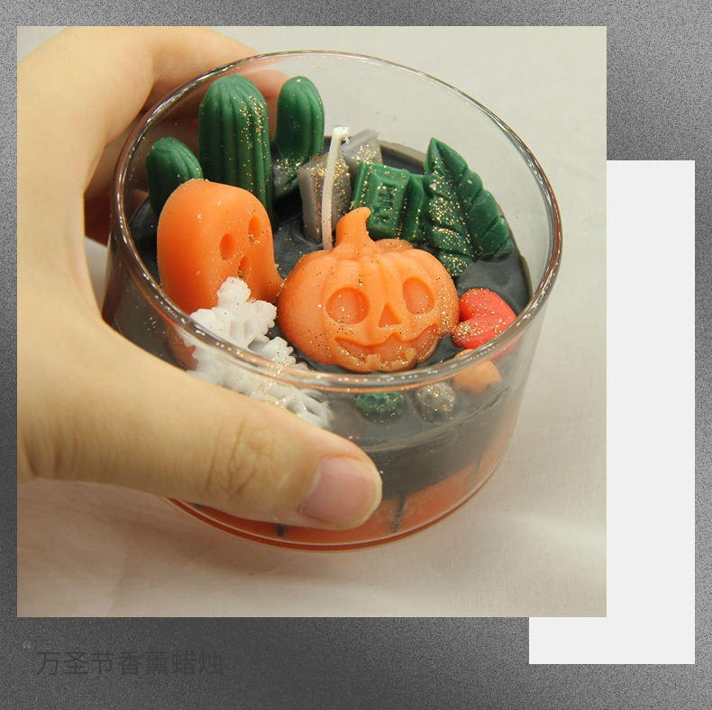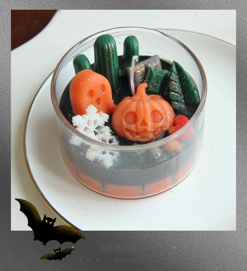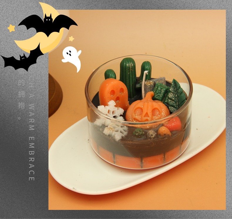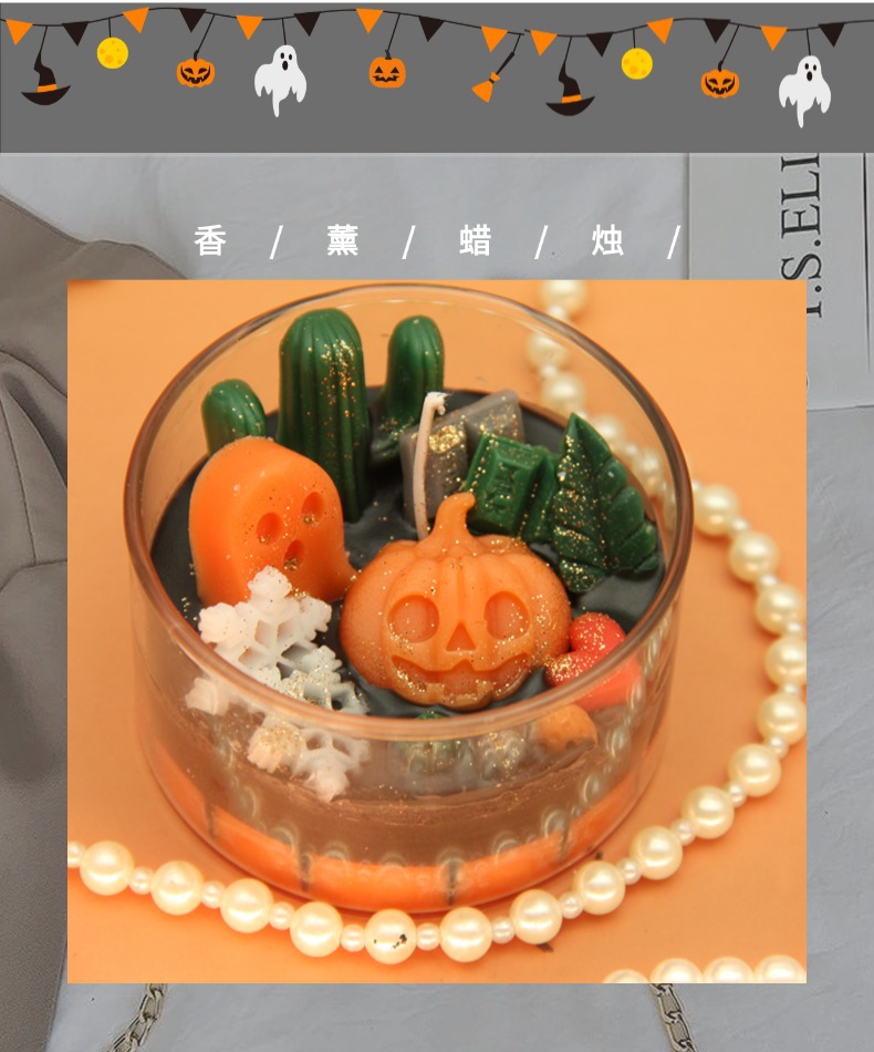 万圣节玻璃杯骷髅头惊悚南瓜香薰蜡烛万圣夜蜡烛持久香气氛围节日