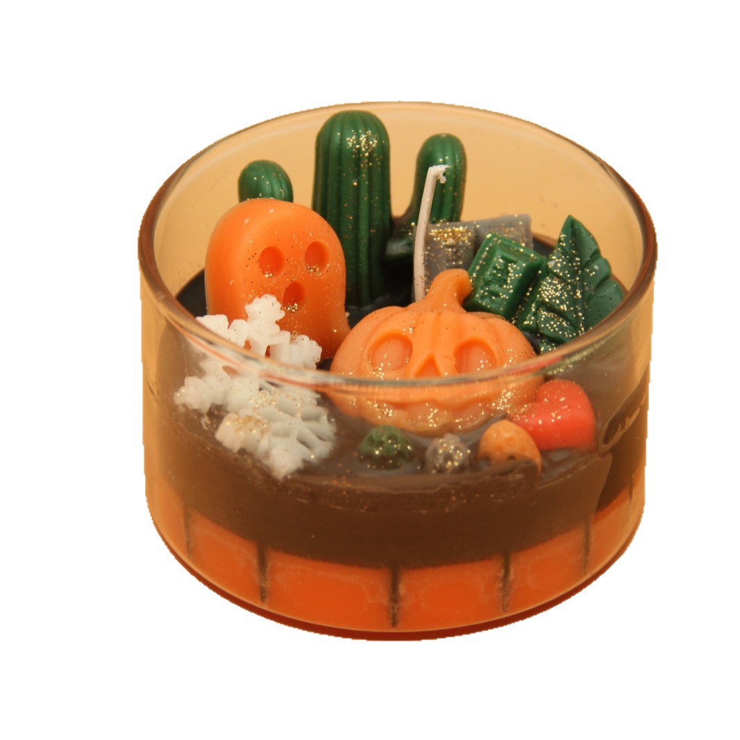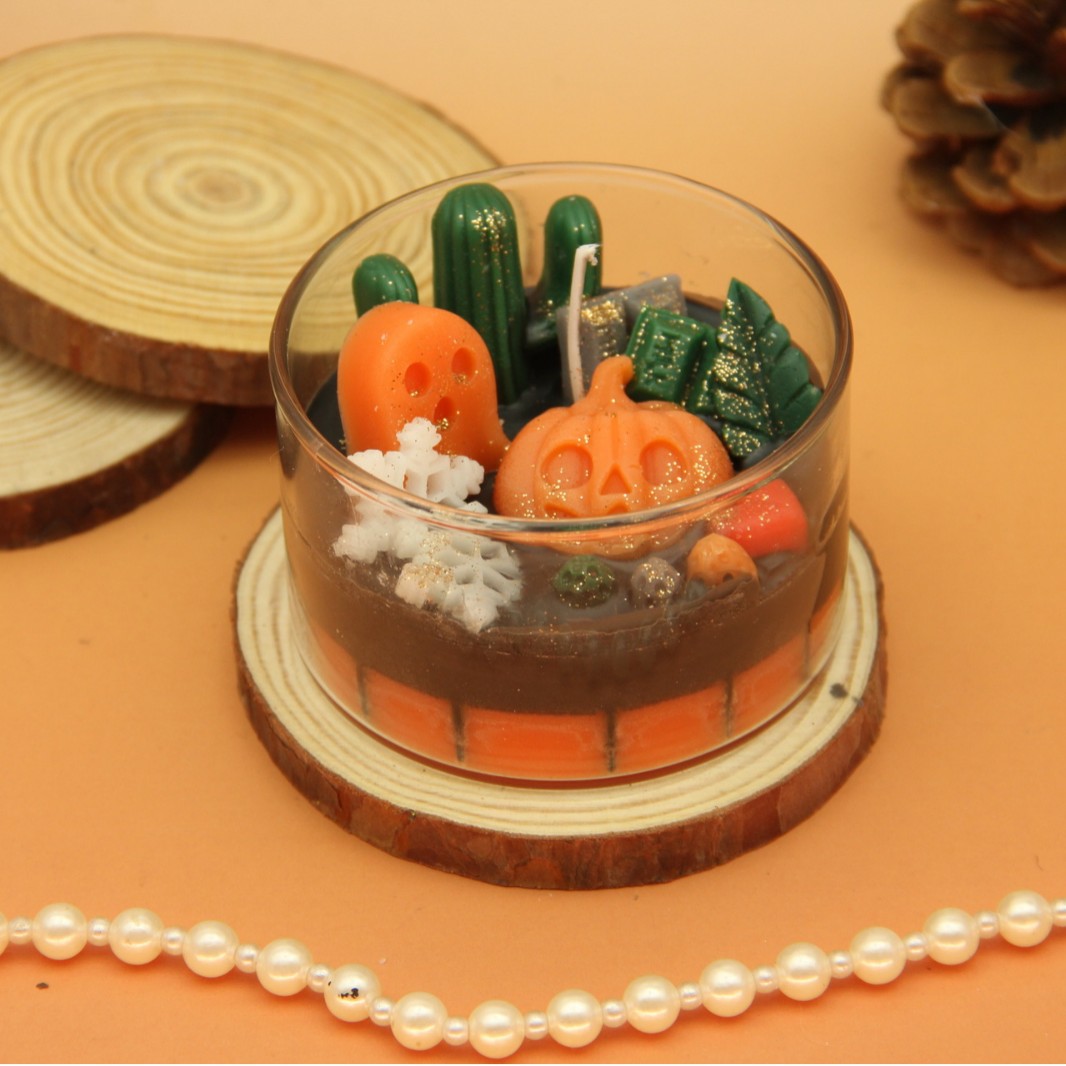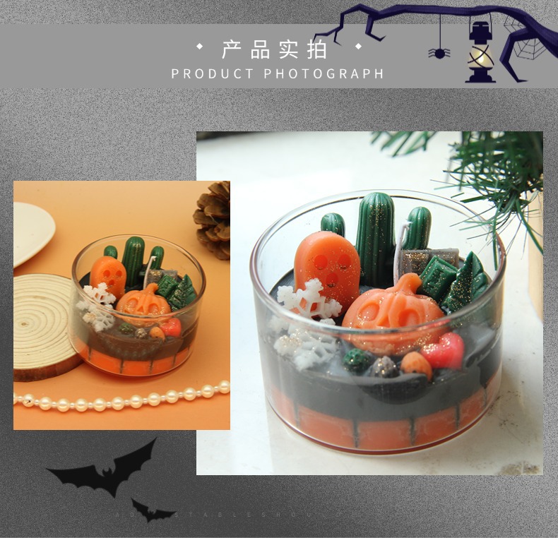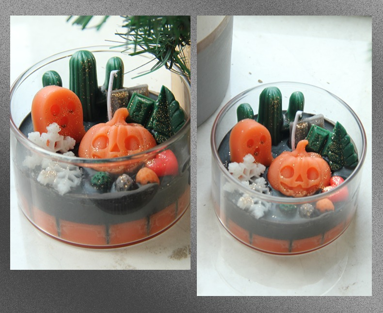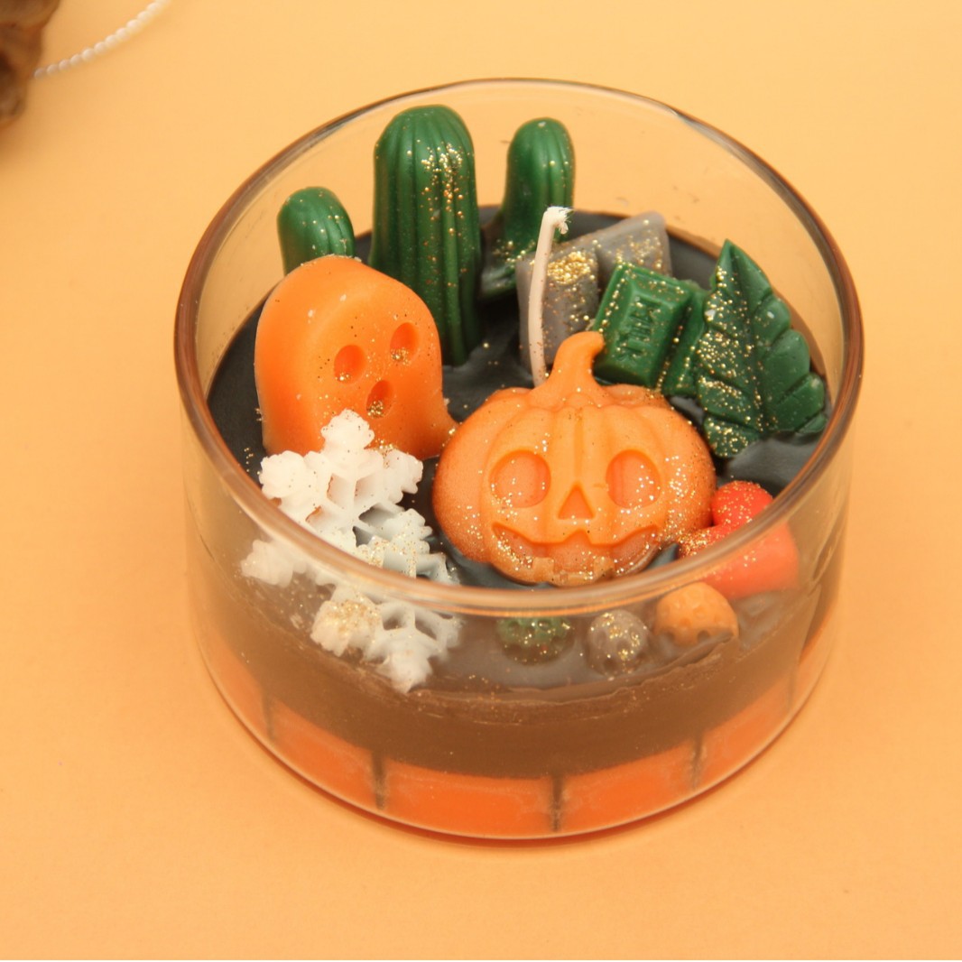 万圣节玻璃杯骷髅头惊悚南瓜香薰蜡烛万圣夜蜡烛持久香气氛围节日