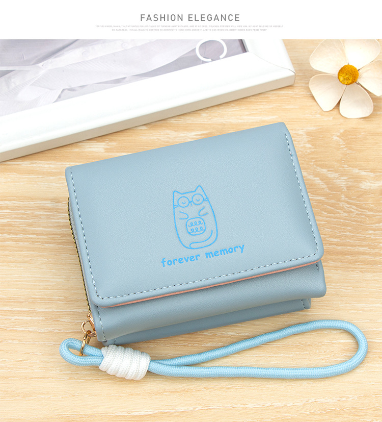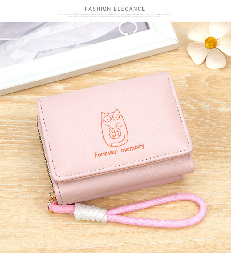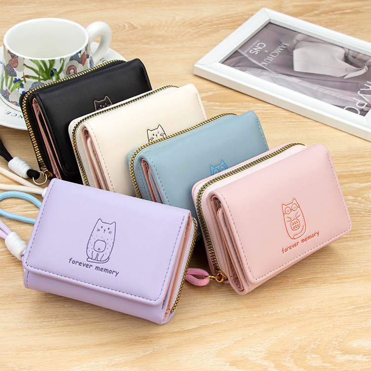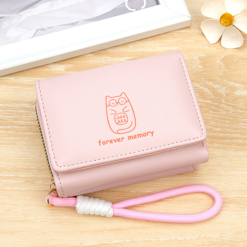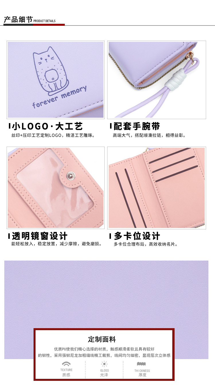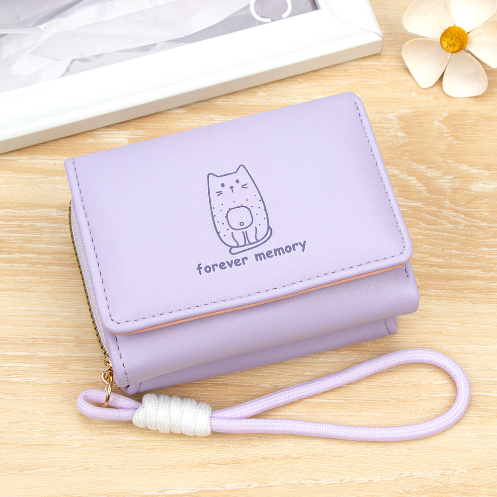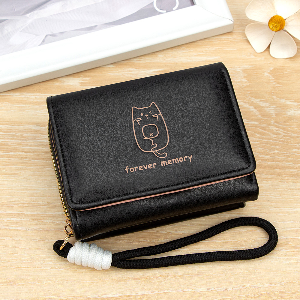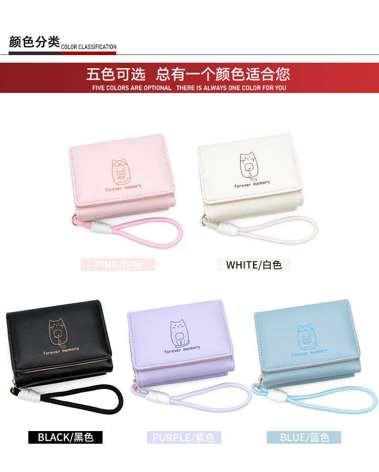 INS风日式可爱小猫女生钱包短款 大容量卡包拉链零钱包挂绳手拿包