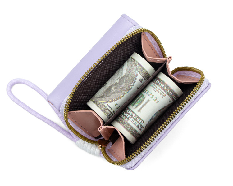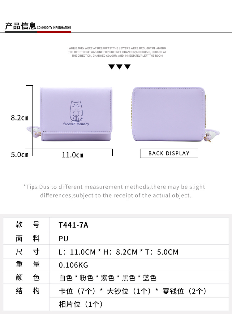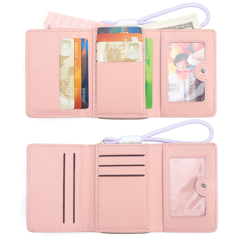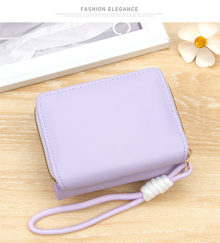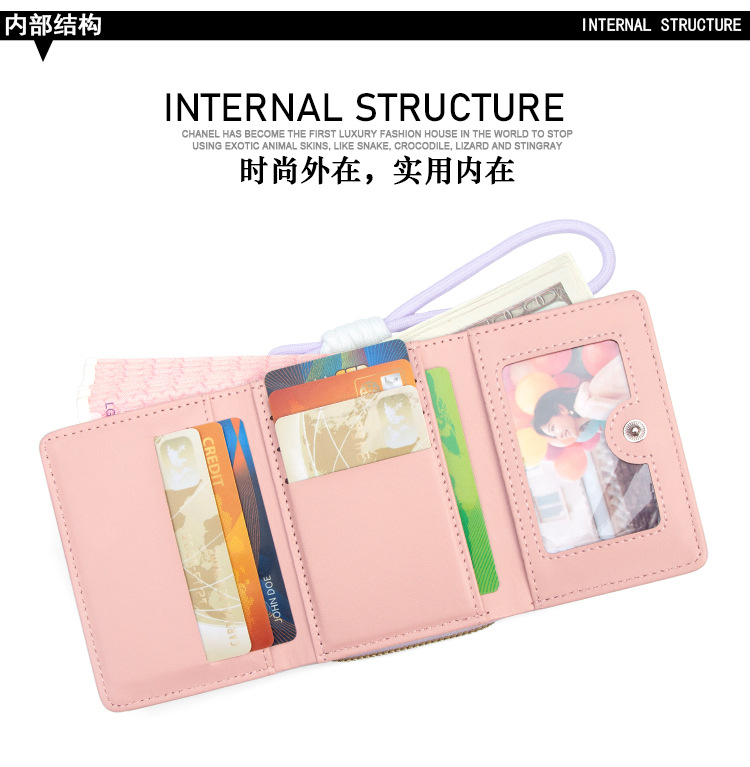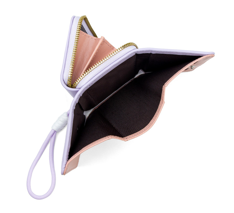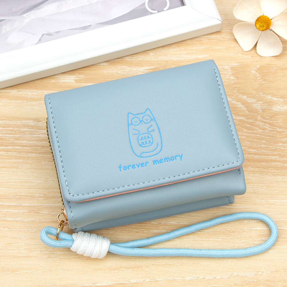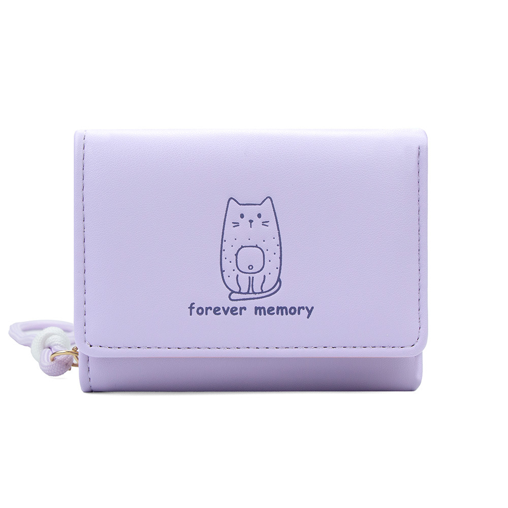 INS风日式可爱小猫女生钱包短款 大容量卡包拉链零钱包挂绳手拿包