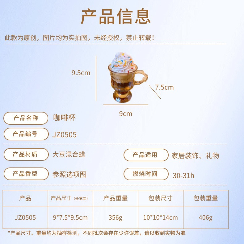 美式咖啡杯冰淇淋香薰蜡烛玻璃杯雪顶浪漫温馨香薰可爱送朋友小众