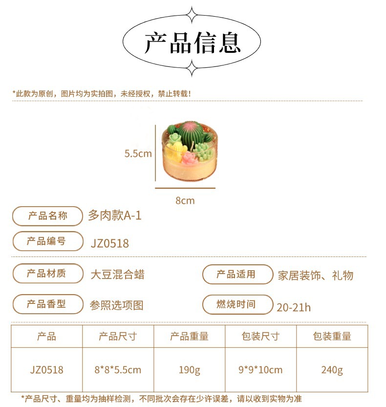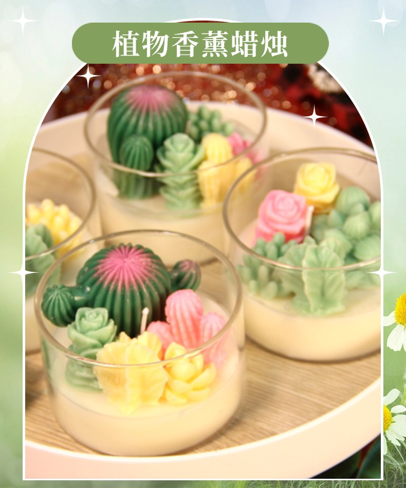 多肉植物仙人掌香薰蜡烛卧室香氛装饰品创意摆件盆栽节日伴手礼礼
