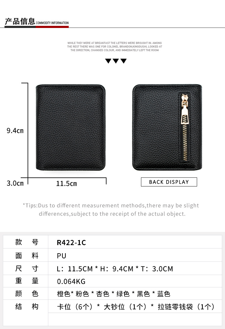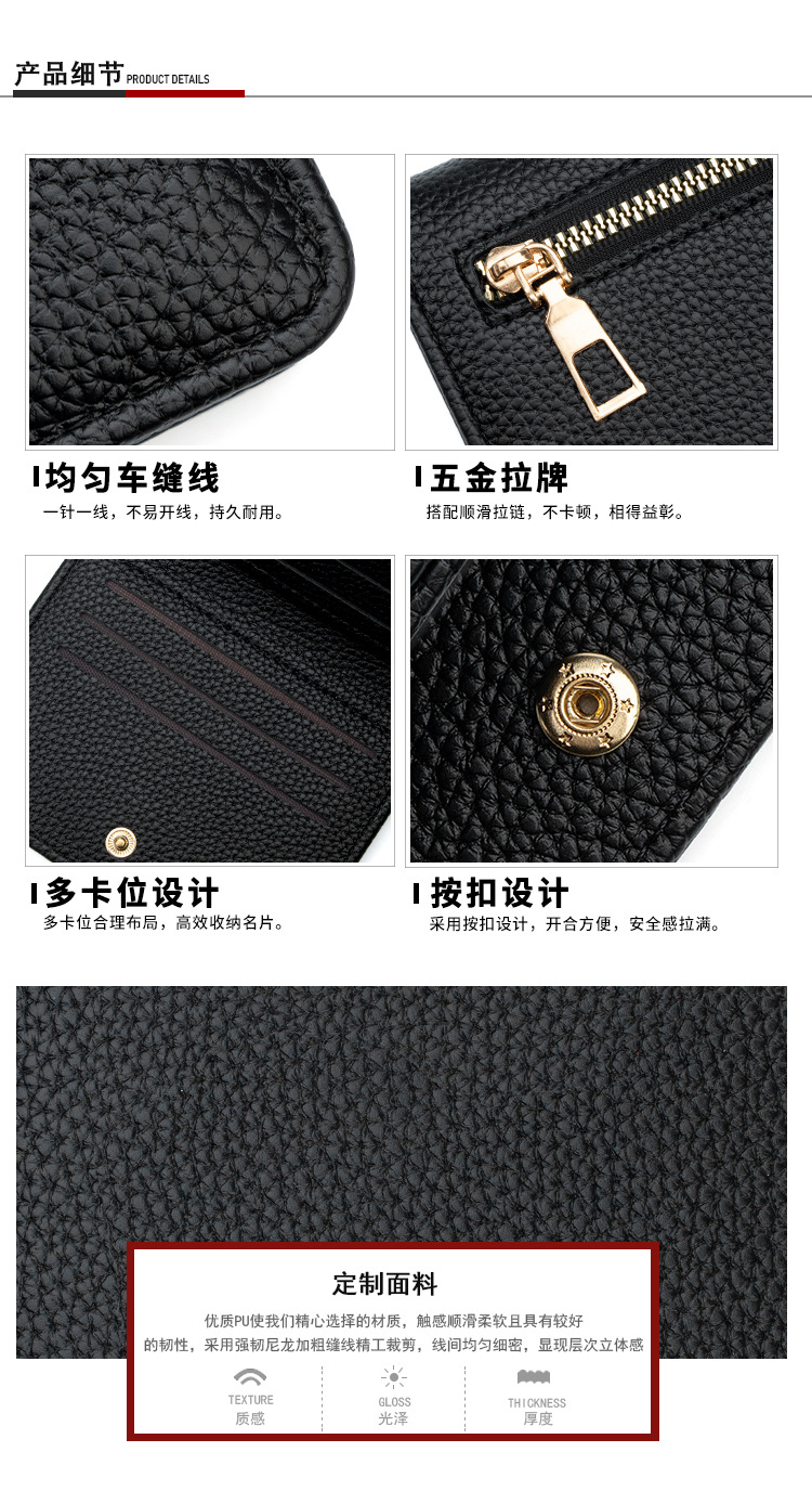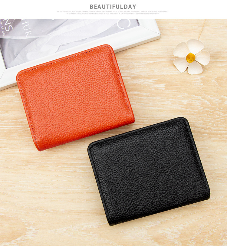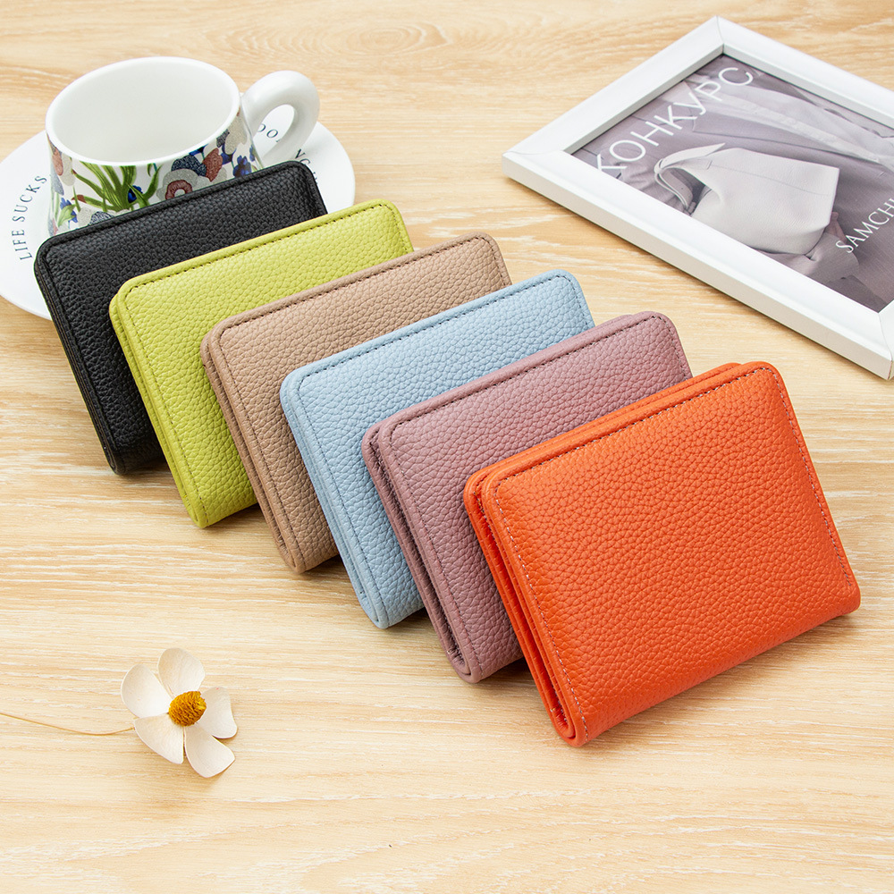 新款女士荔枝纹钱包短款学生日系超薄时尚潮牌卡包韩版两折钱包