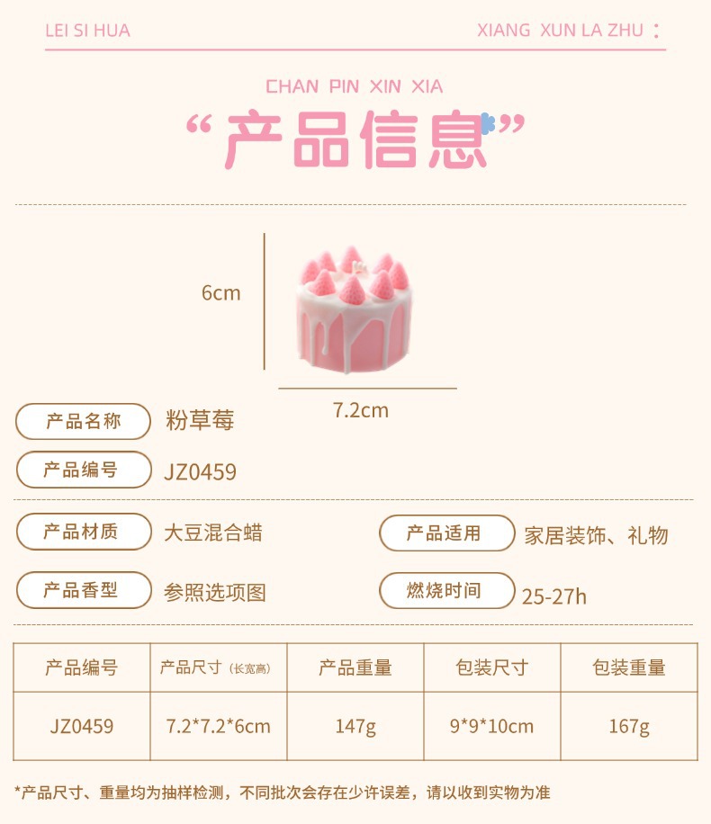 粉色草莓可爱香薰蜡烛暖心生日毕业礼物节日送伴手礼朋友温馨礼物