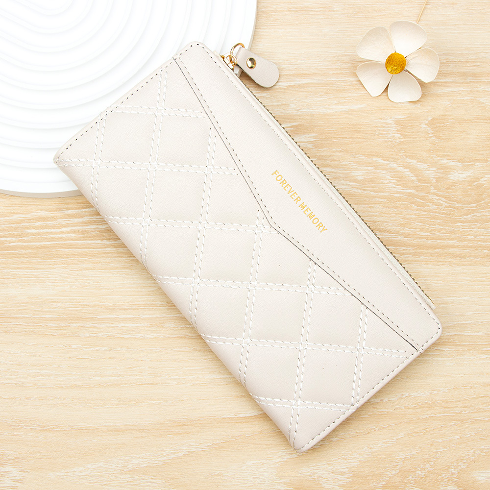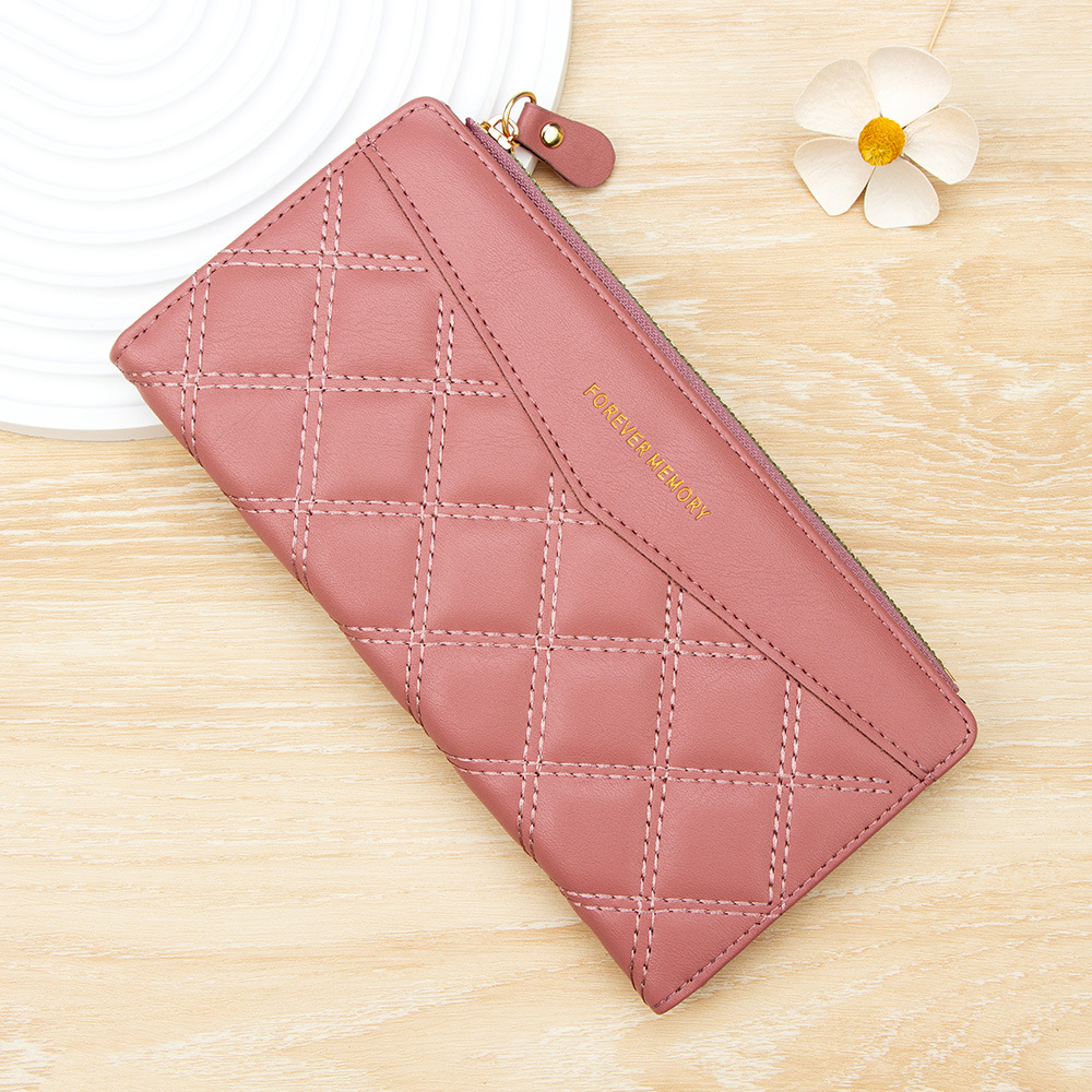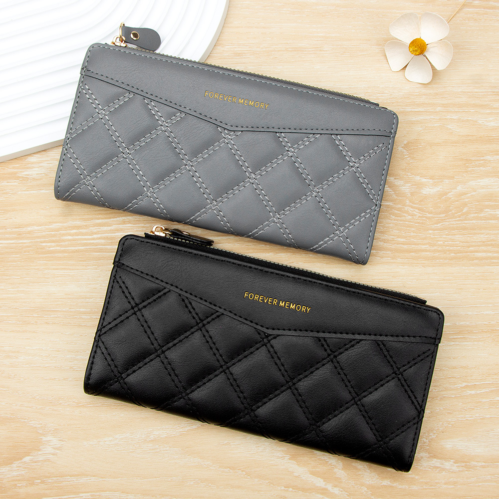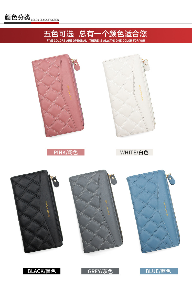 女士长款钱包菱格ins风学生女2折折叠钱夹Wallet批发钱包女士长款