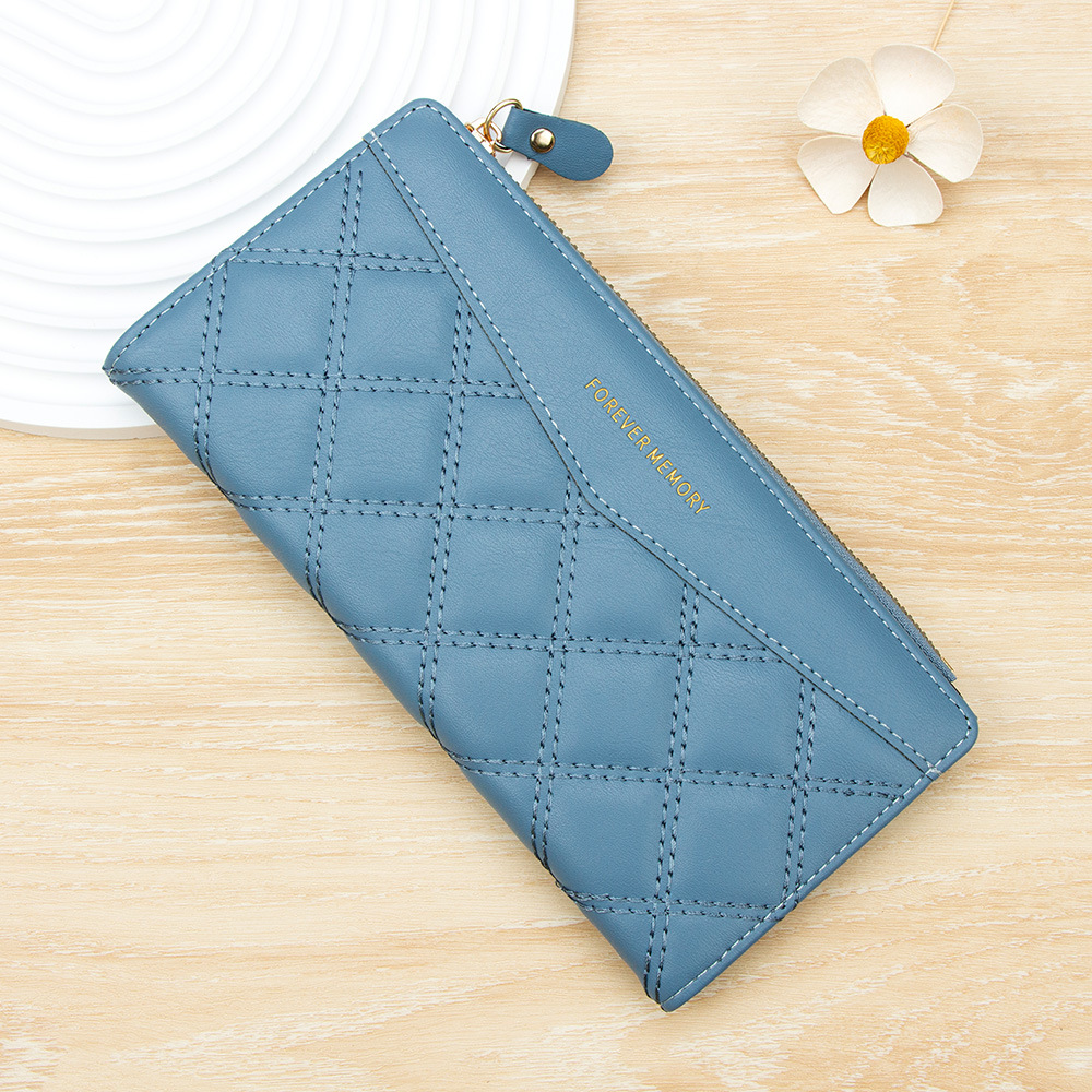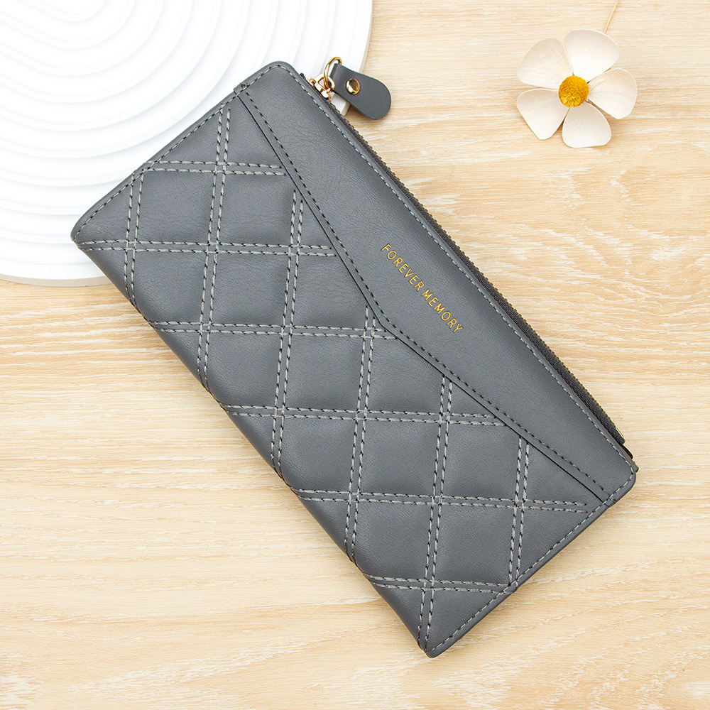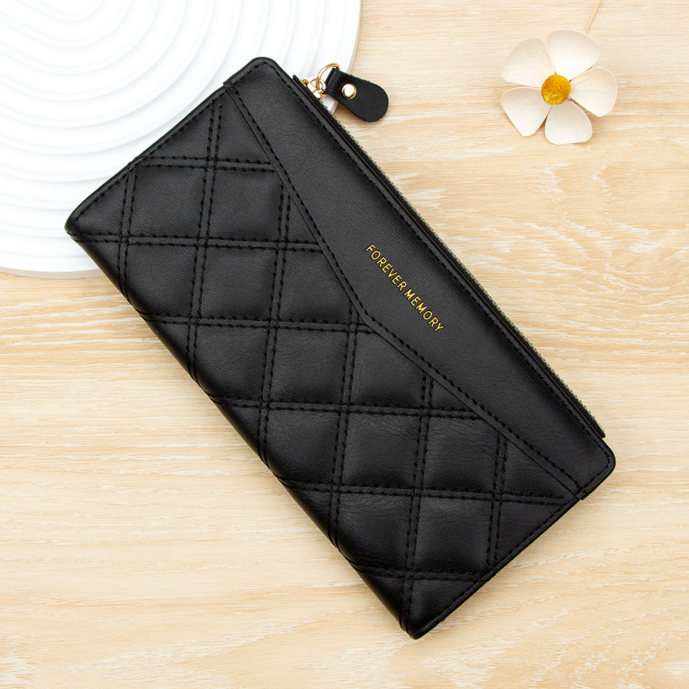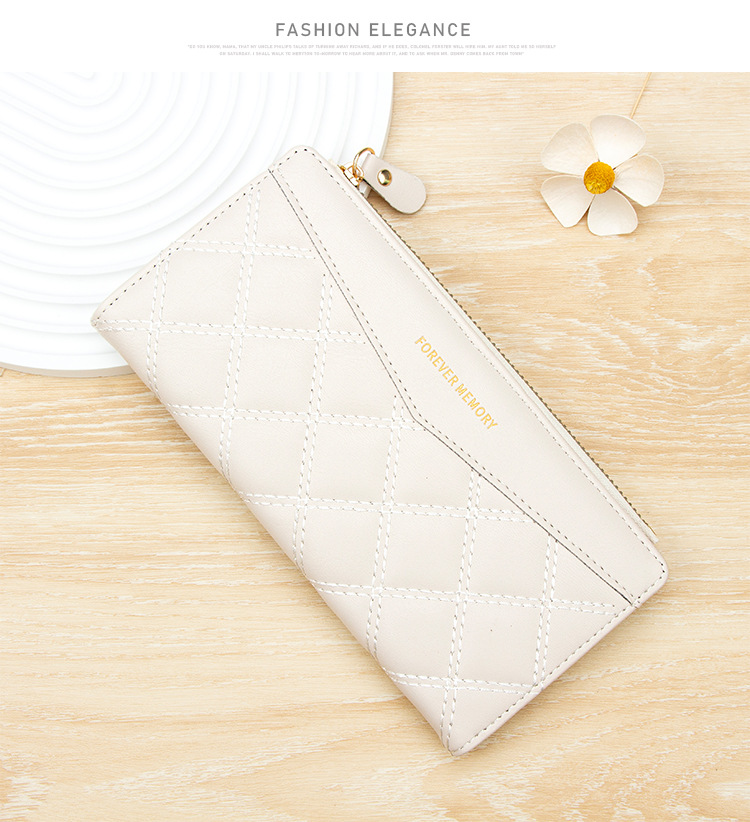 女士长款钱包菱格ins风学生女2折折叠钱夹Wallet批发钱包女士长款