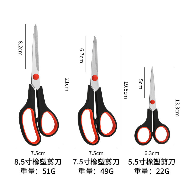 吸卡装橡塑柄剪刀5.5寸7.5寸8.5寸家用办公文具剪剪纸插卡手工剪