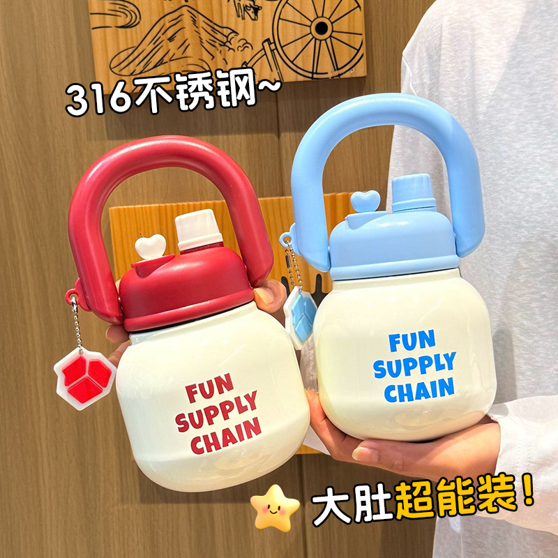 拎拎壶保温杯双饮吸管杯316不锈钢男女高颜值潮流提手便携大肚杯