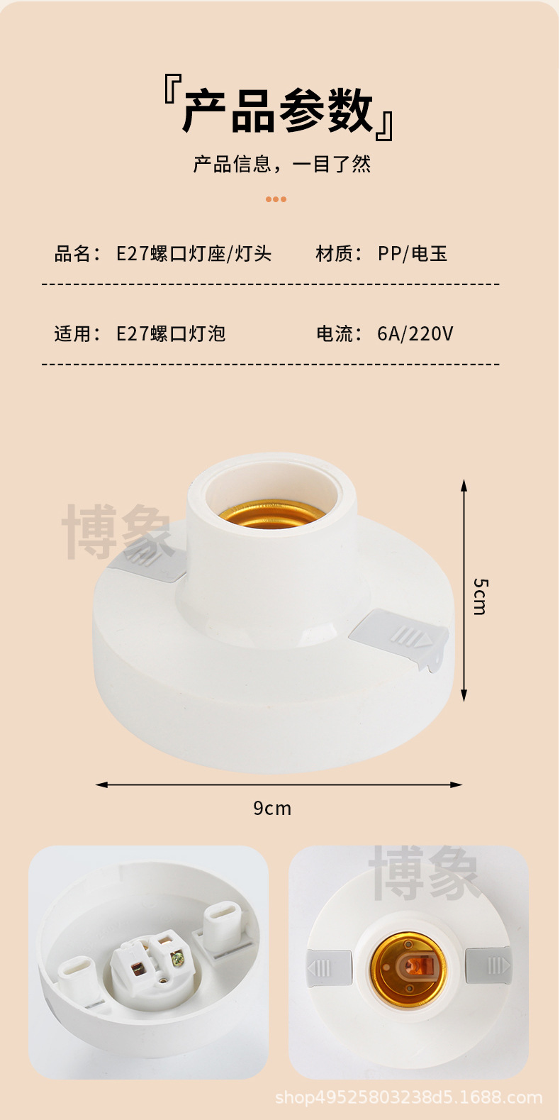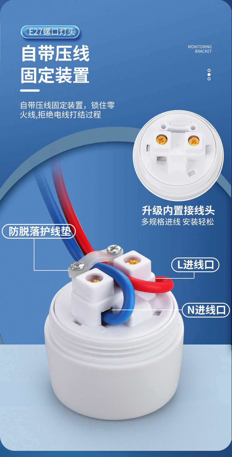 新结构灯头 螺纹吊灯 9公分 12公分圆塑料灯座 防脱落e27螺