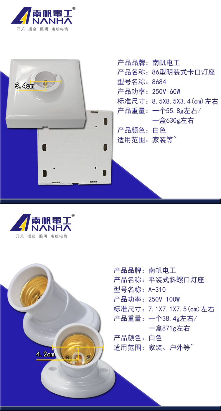 E27螺口B22卡口插口明装灯头灯座转换灯头底座带开关插座感应灯座
