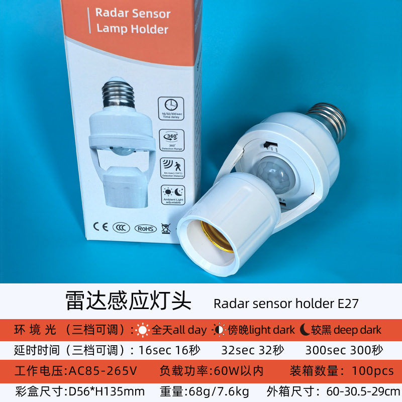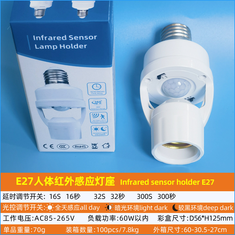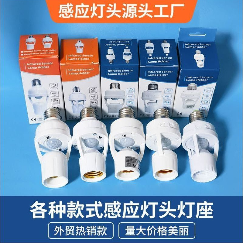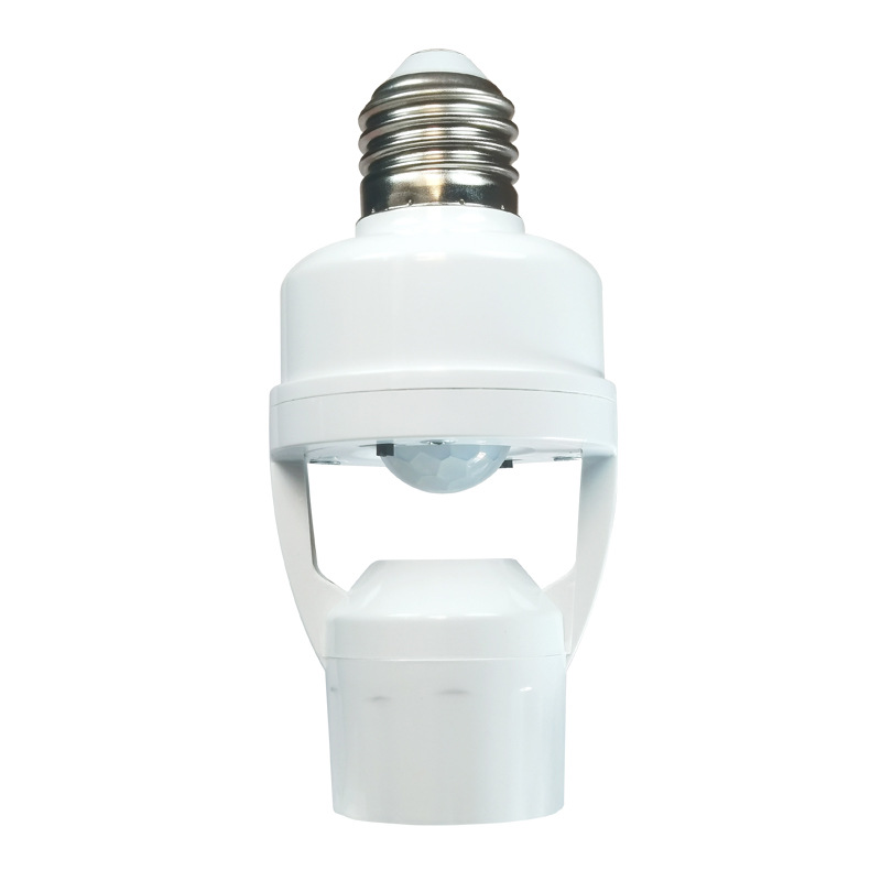 跨境人体红外感应转换灯头可调E27螺口光控人来灯亮雷达感应灯座