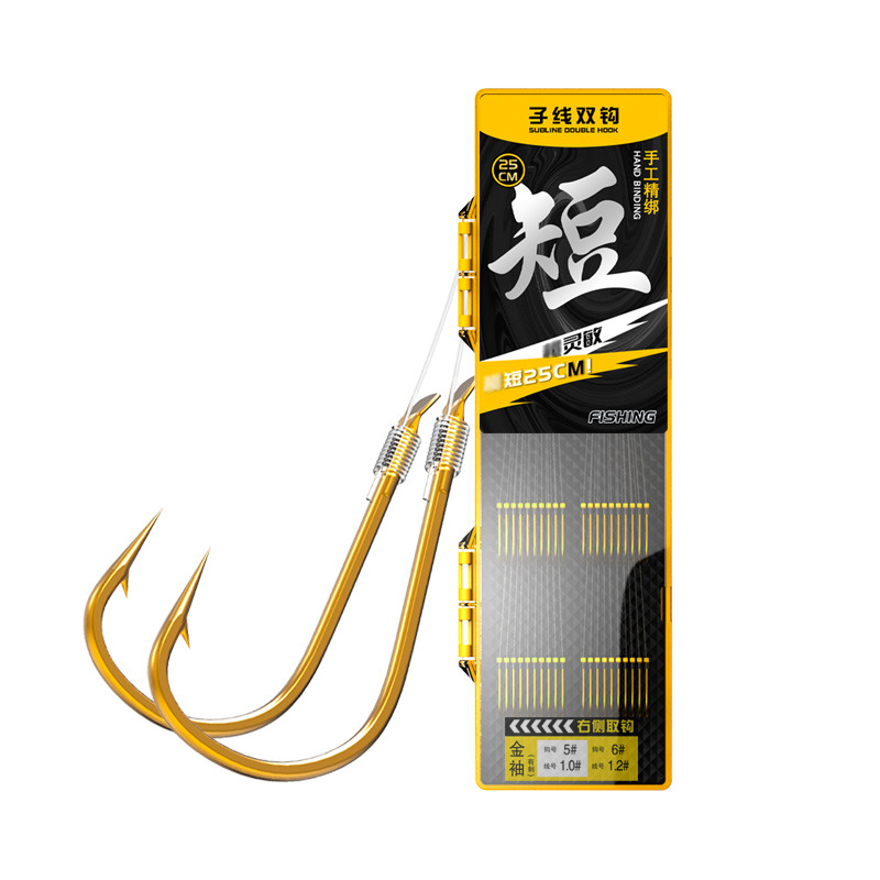 千鲤莱野钓短子线双钩20付金袖海夕伊豆鱼钩绑好成品子线双勾批发