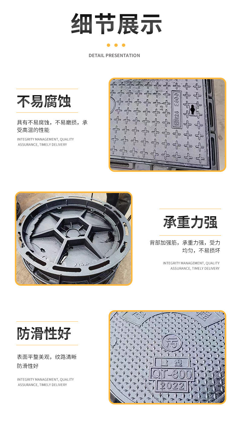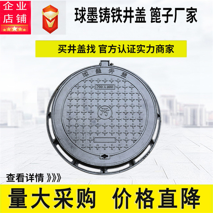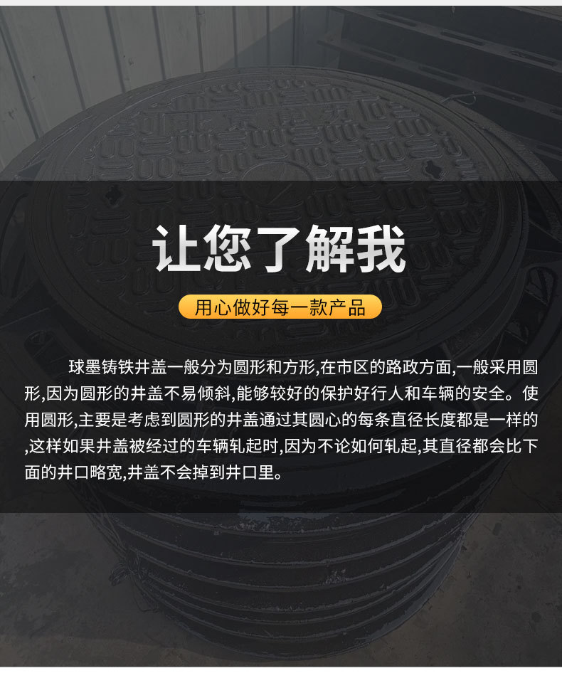 实体球墨铸铁圆形井盖厂家 防盗直径700轻型过小车雨污水铸铁井盖