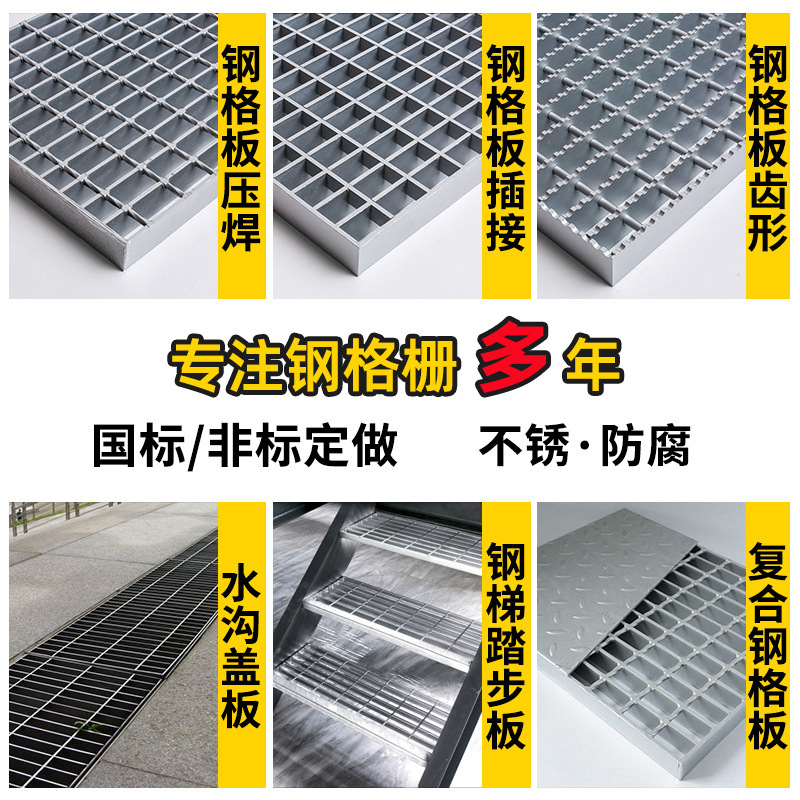 镀锌钢格板楼梯踏步板热镀锌钢格栅不锈钢格栅板排水沟盖板网格板