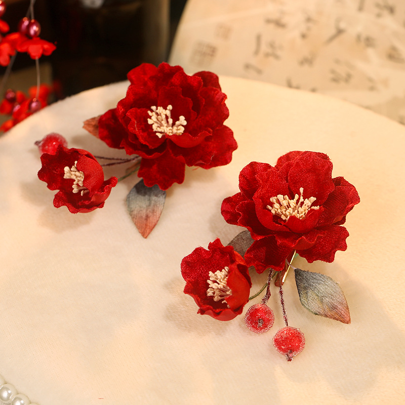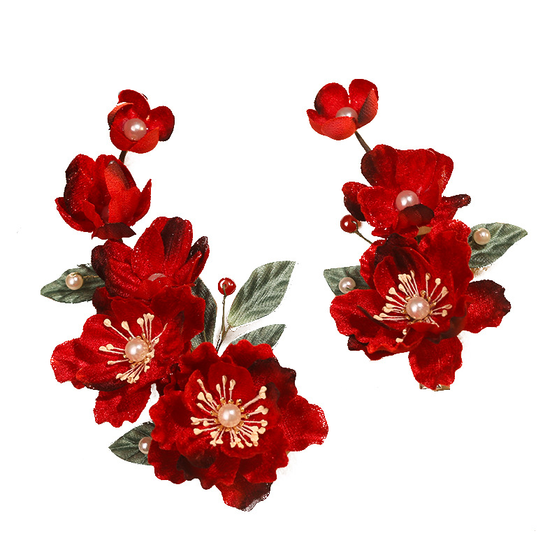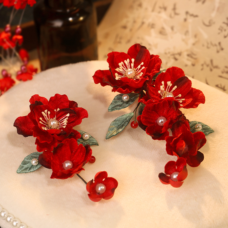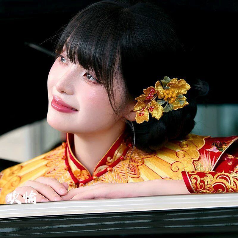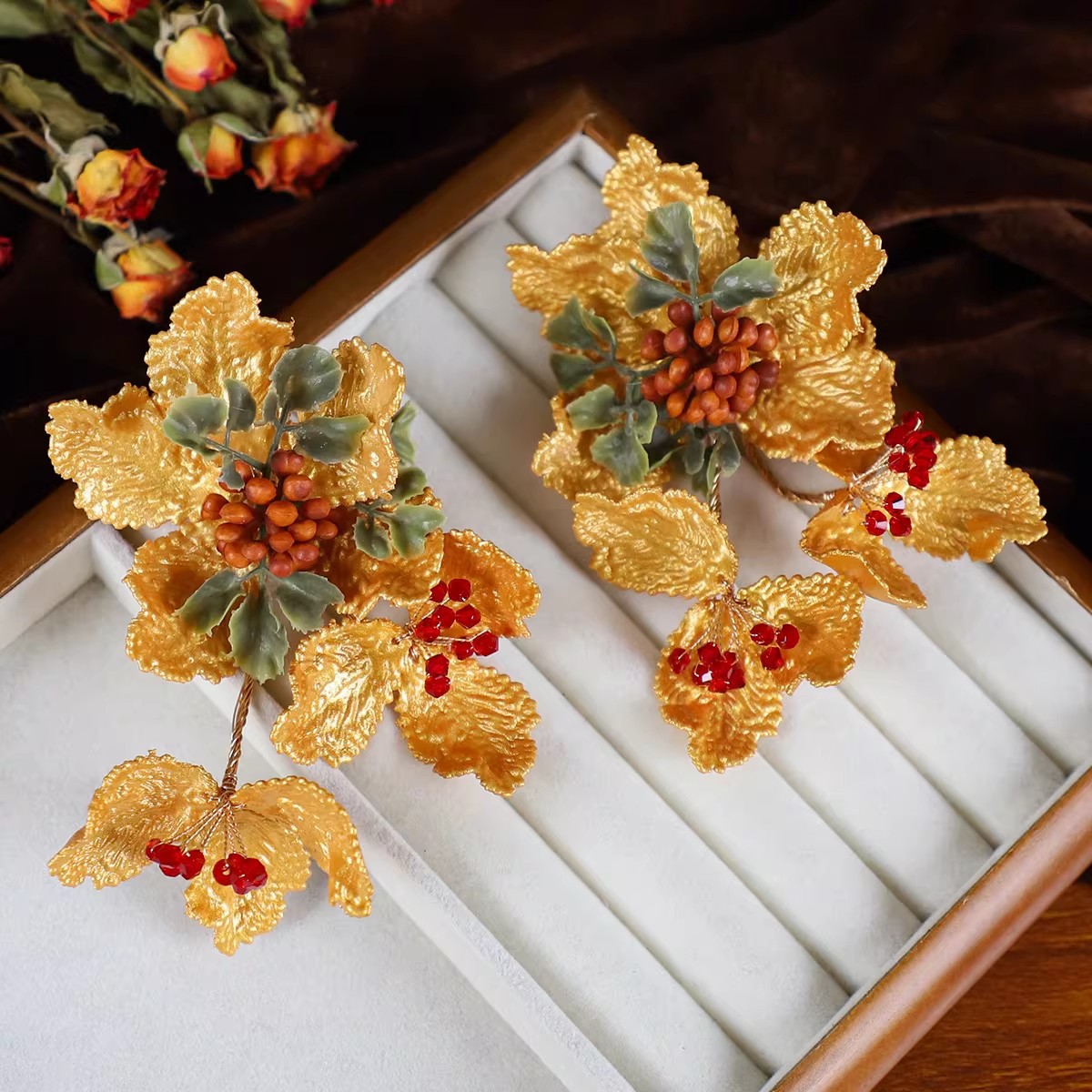 国风金色花朵侧边发饰汉服旗袍搭配头饰新娘秀禾龙凤盘发配饰批发
