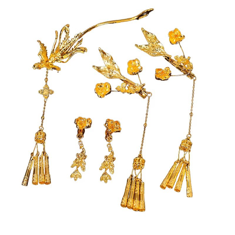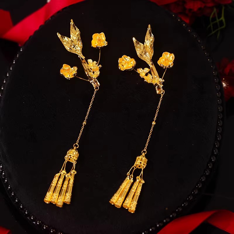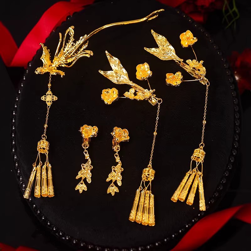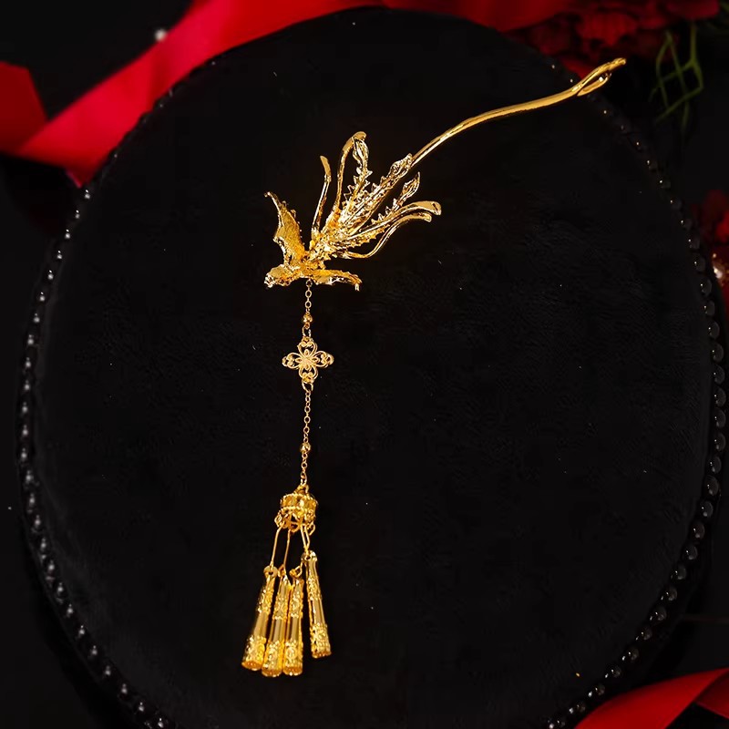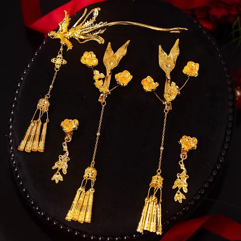 新款中式新娘头饰金色奢华大气步摇发簪秀禾服龙凤褂流苏配饰批发
