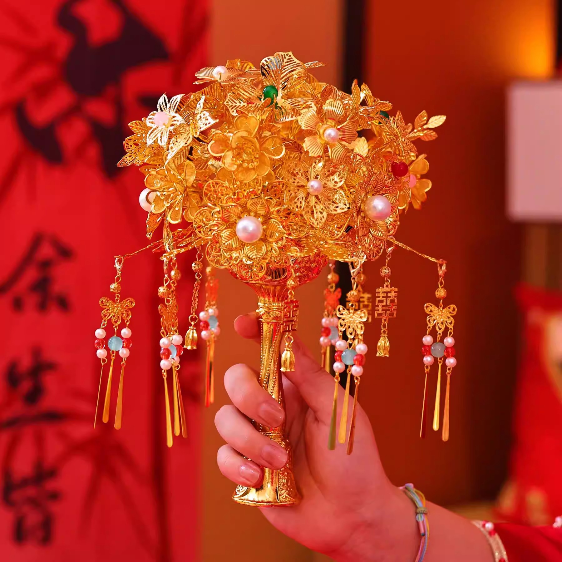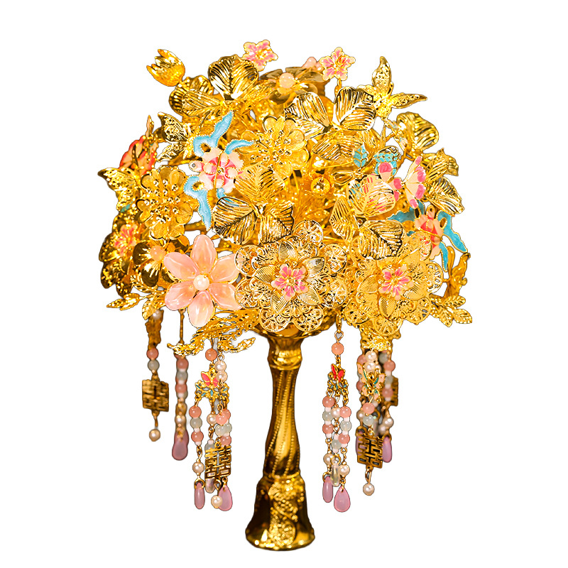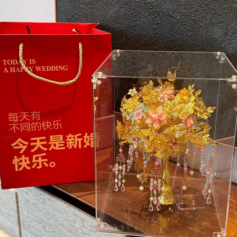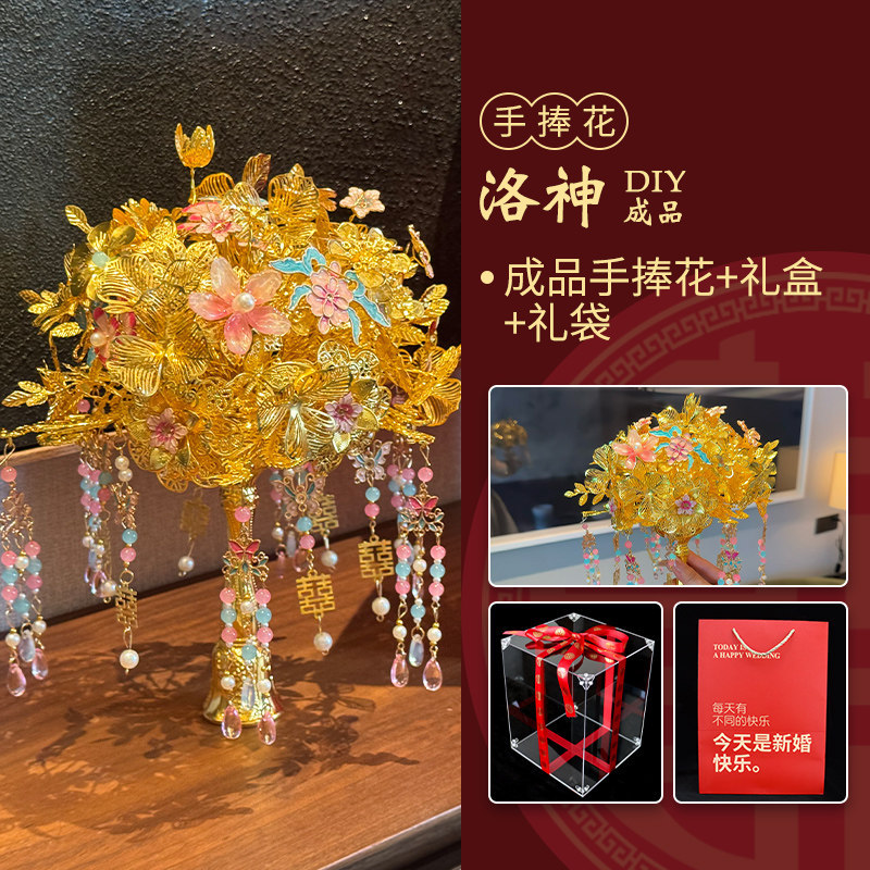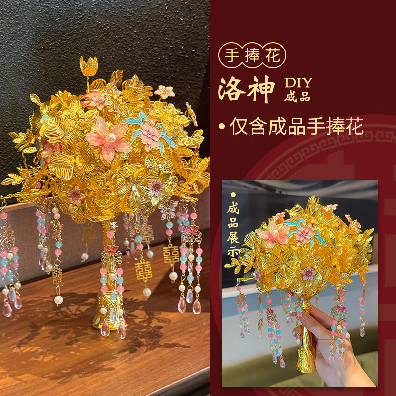 手捧花新娘结婚手工制作黄金色流苏婚礼高级出嫁秀禾中式送闺蜜