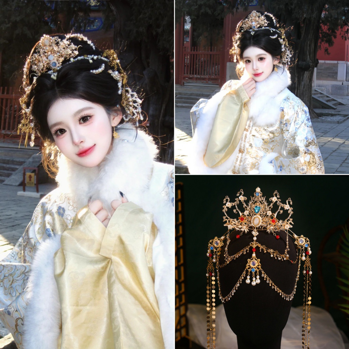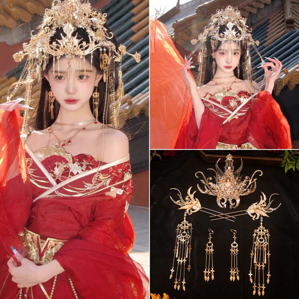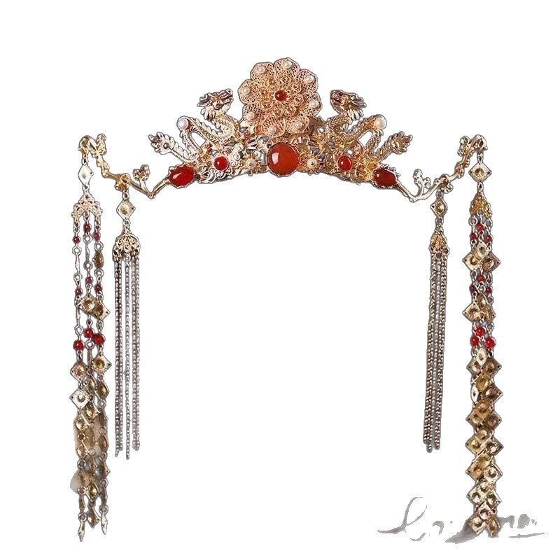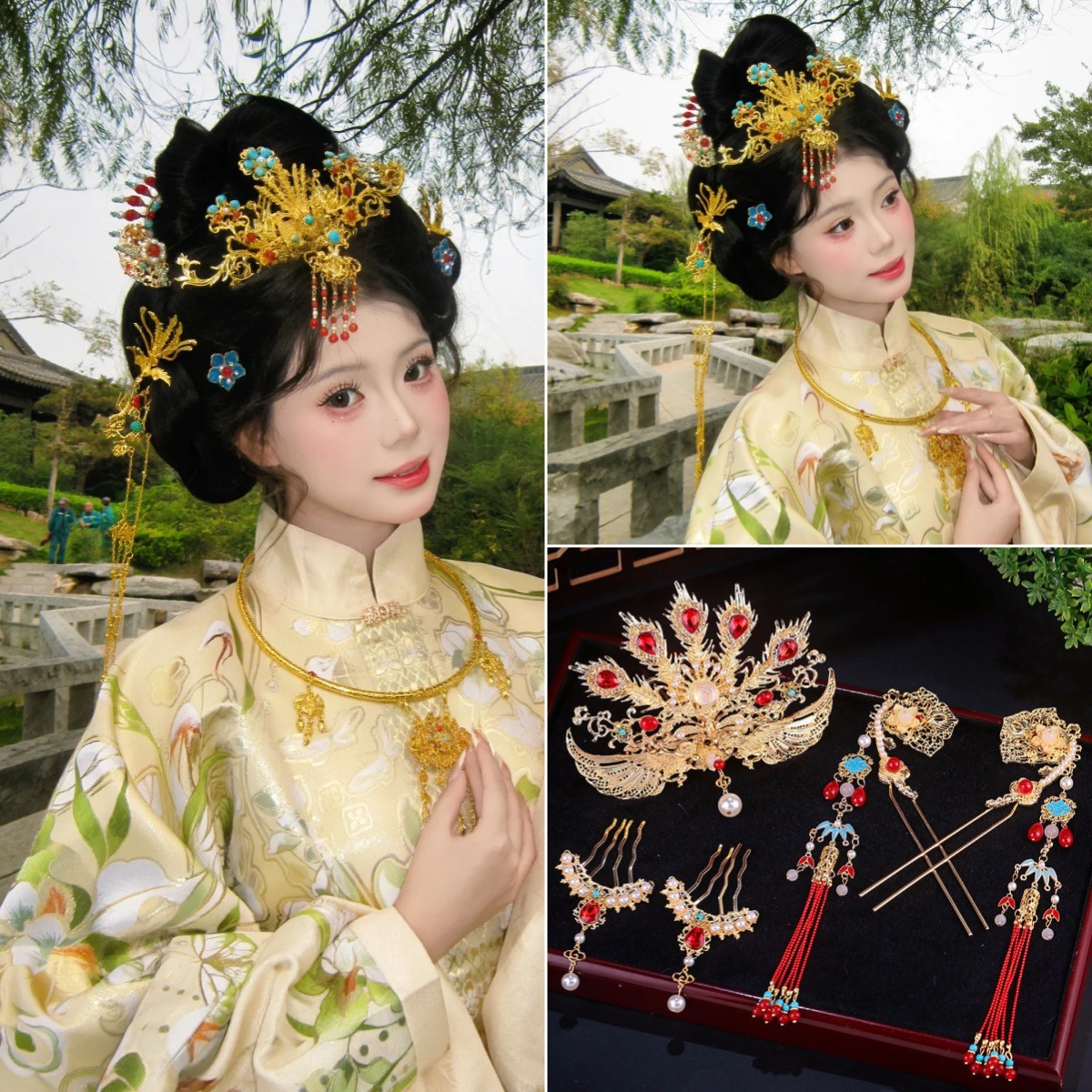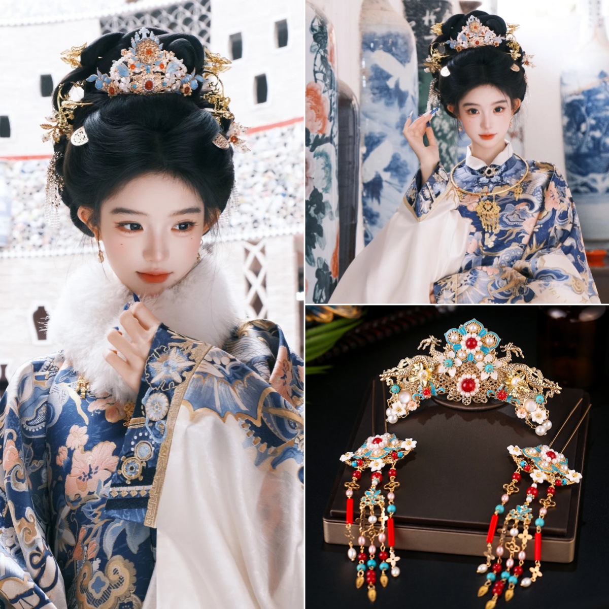 明制京城贵女秀禾凤冠新娘中式婚礼奢华烧蓝发冠婚嫁汉服头饰套装