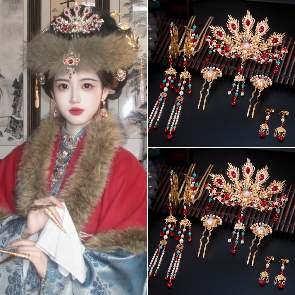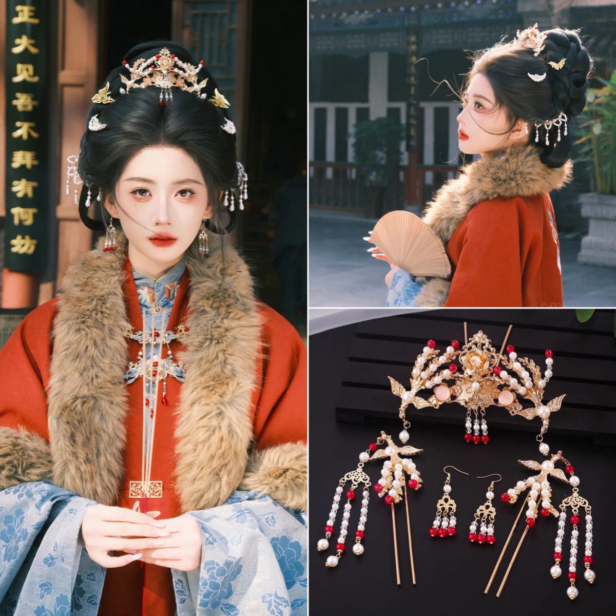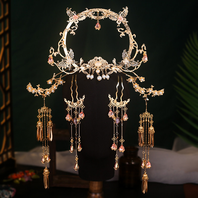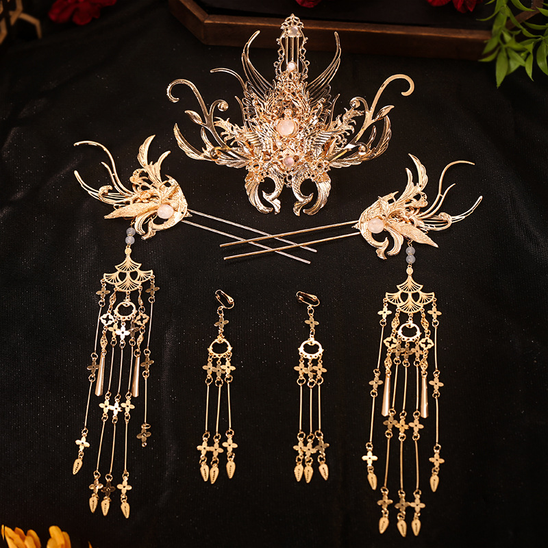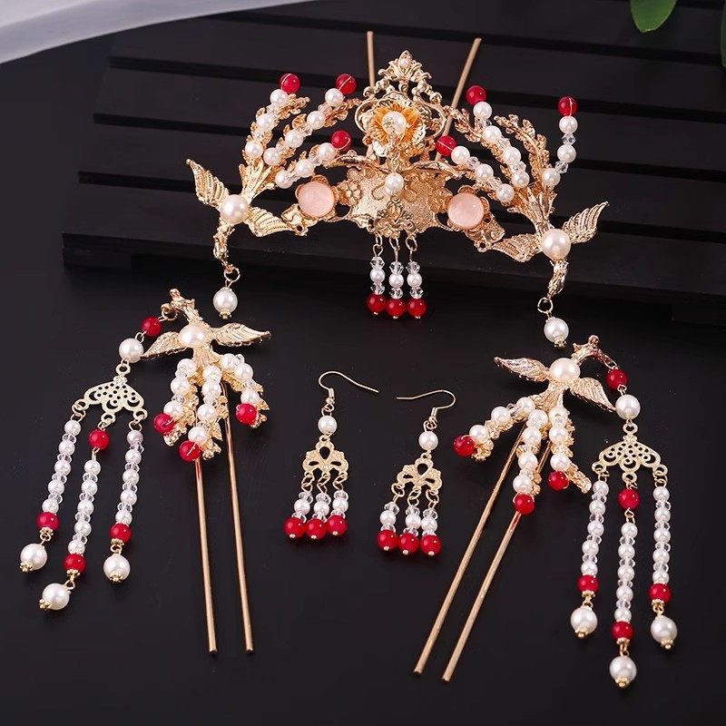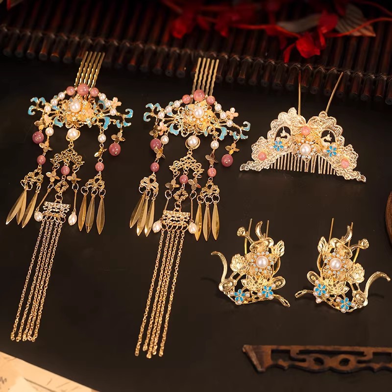 明制京城贵女秀禾凤冠新娘中式婚礼奢华烧蓝发冠婚嫁汉服头饰套装