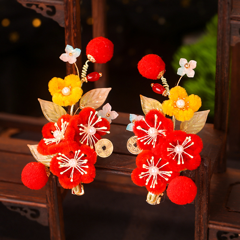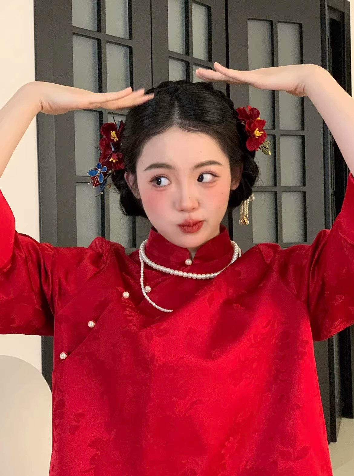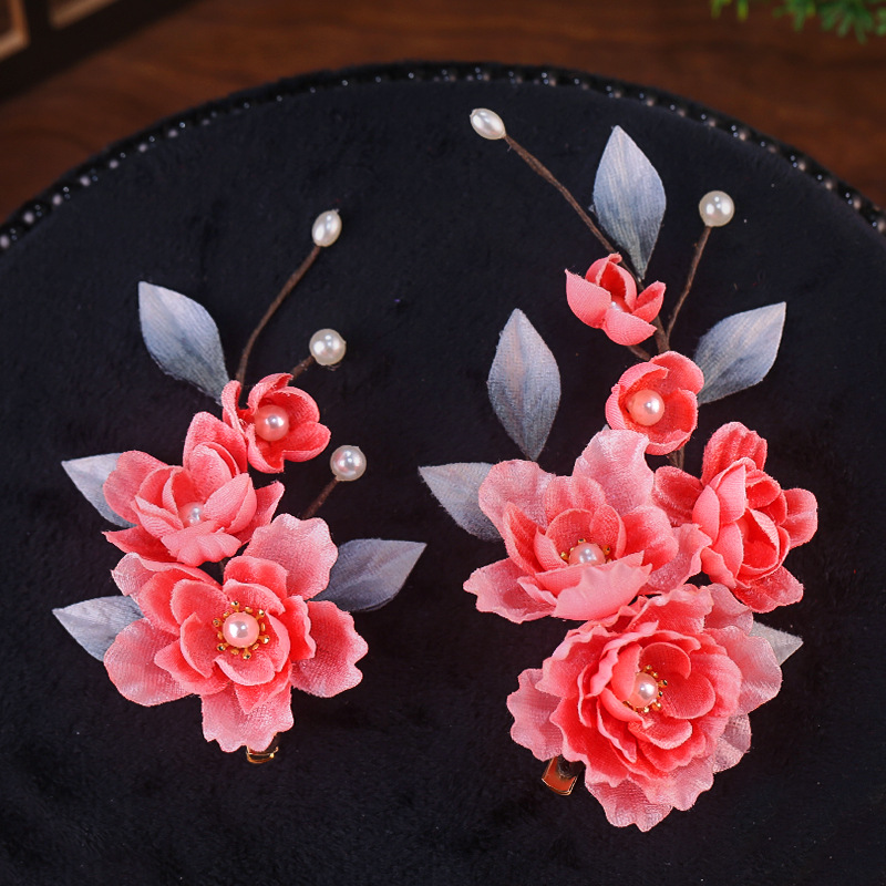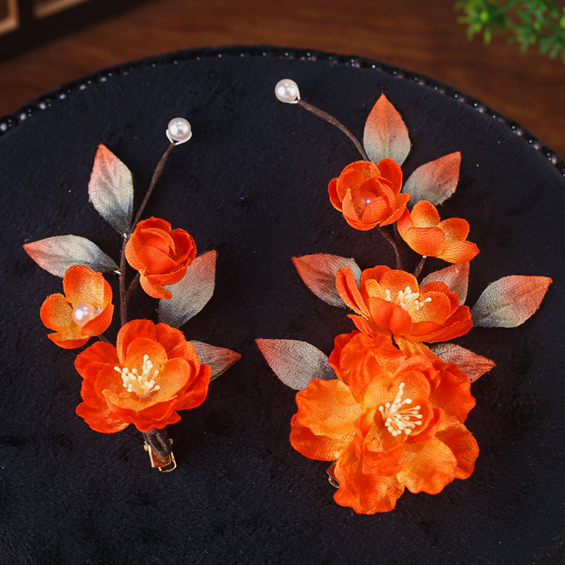 新娘红色山茶花发夹新中式旗袍敬酒服头饰马面裙低丸子头配饰发饰