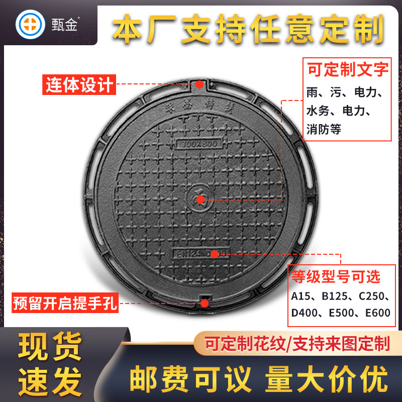 球墨铸铁井盖重型D400市政C250圆形700*800五防加重窨井盖沙井盖