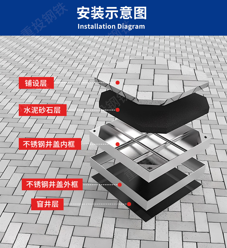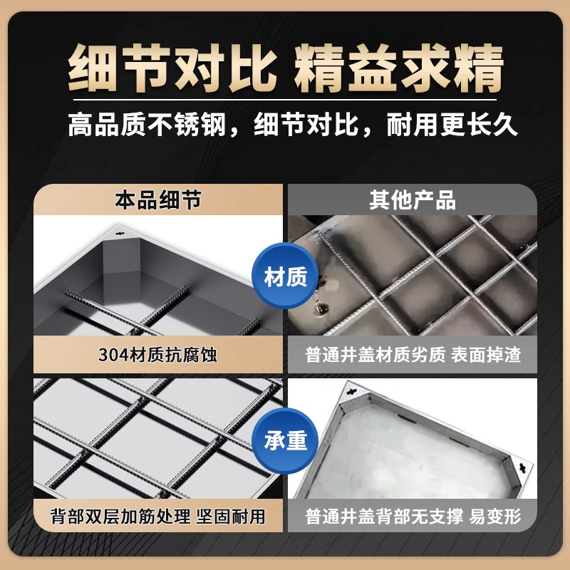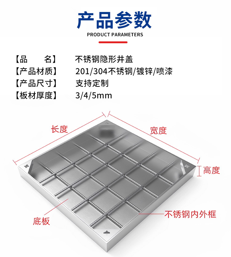 304不锈钢井盖方形隐形装饰井盖板圆形下水道铺砖201不锈钢井盖板