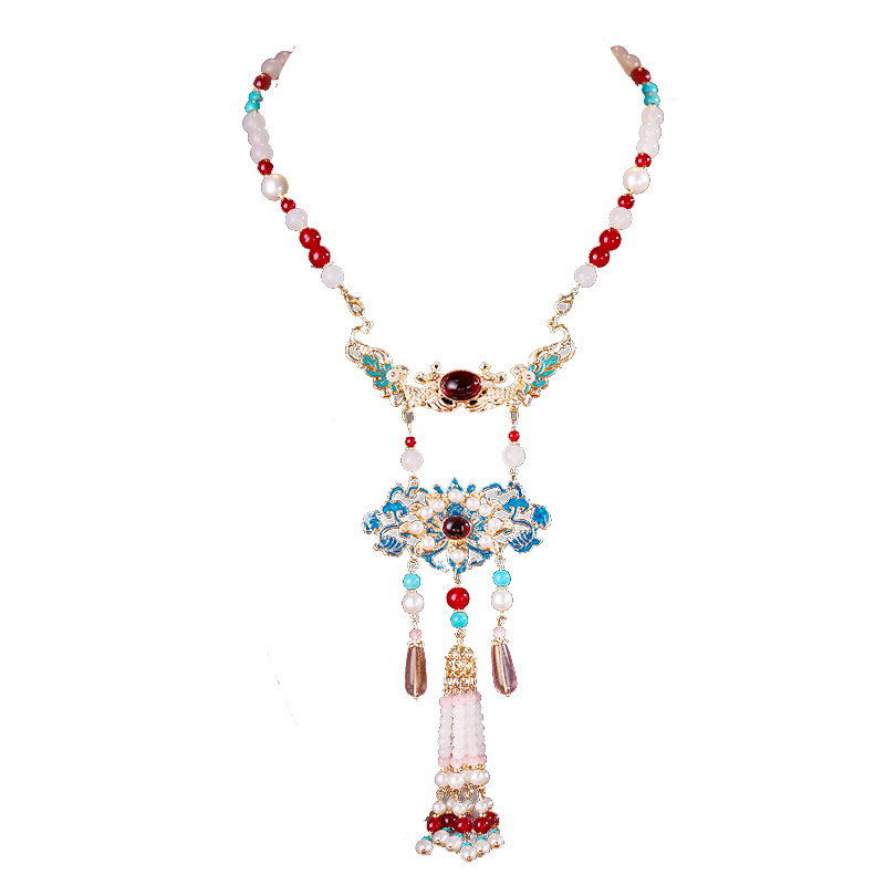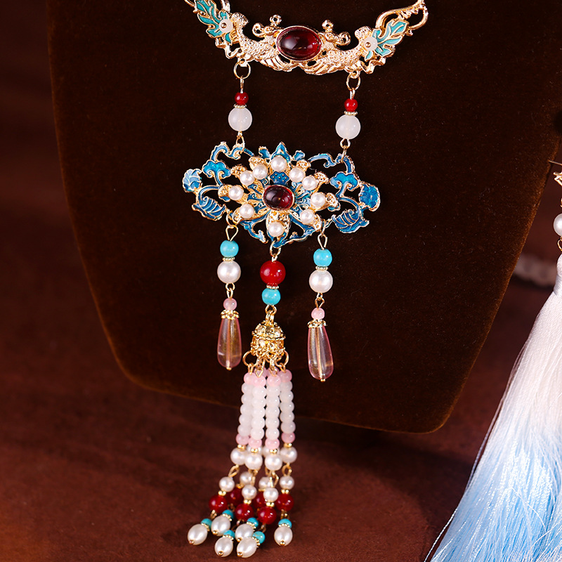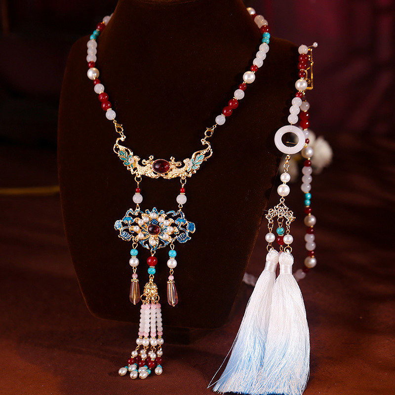 古风项链烧蓝马面裙璎珞背云长流苏汉服配饰超仙复古典雅古装