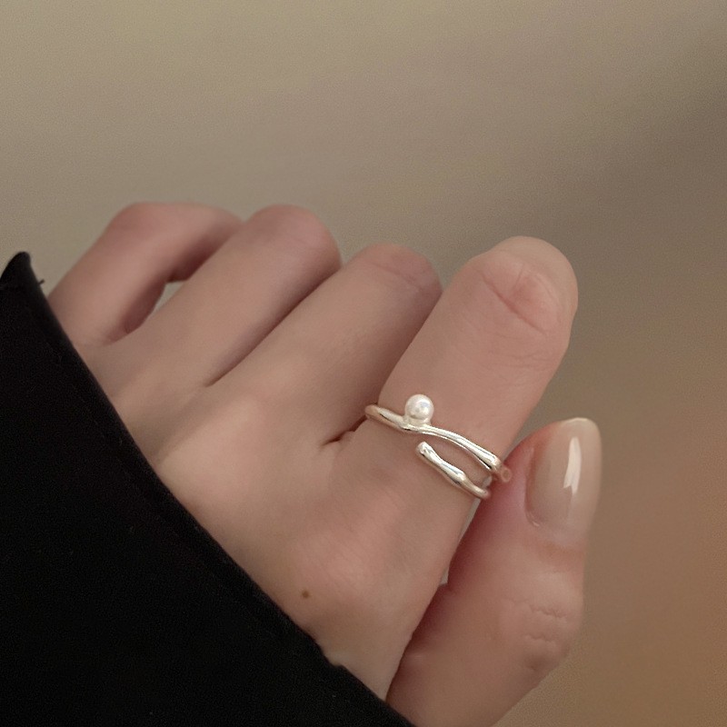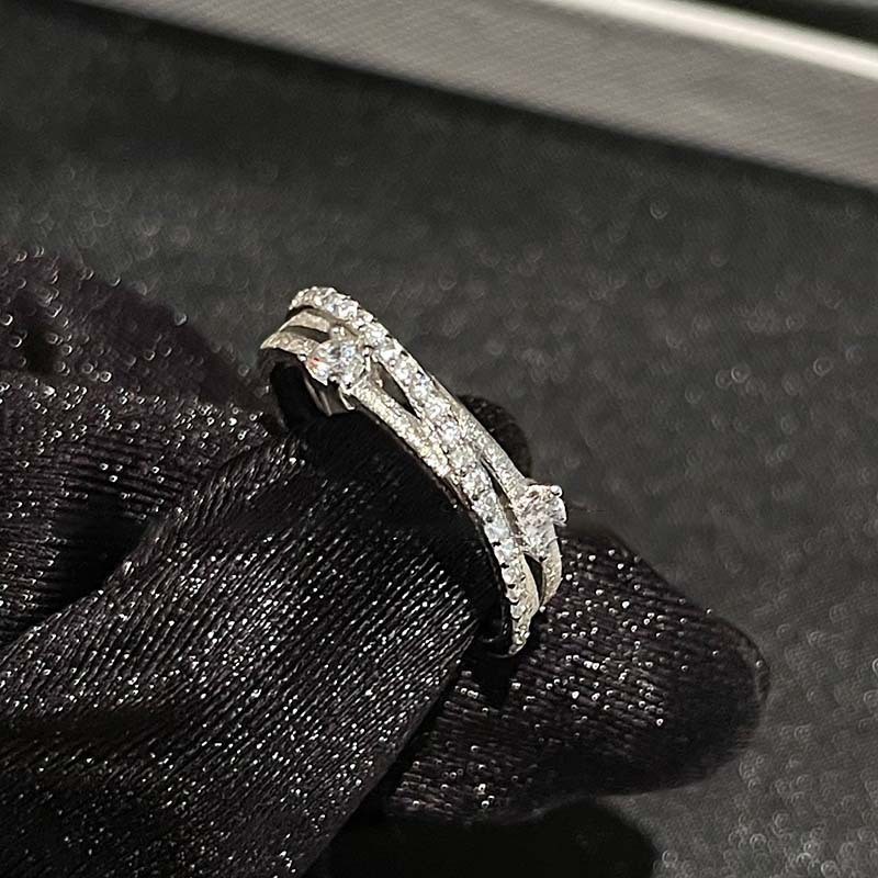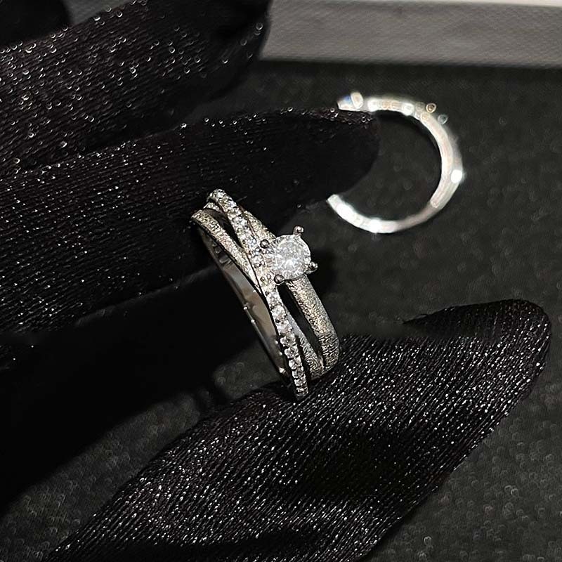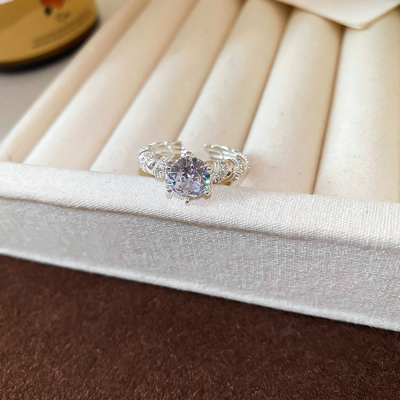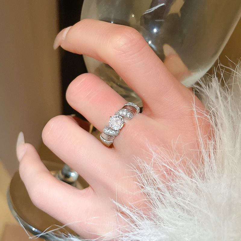 锆石几何双层开口戒指韩国ins风小众食指戒时尚轻奢高级感手饰女