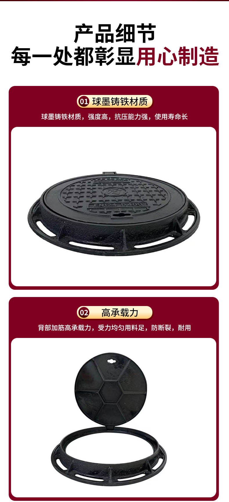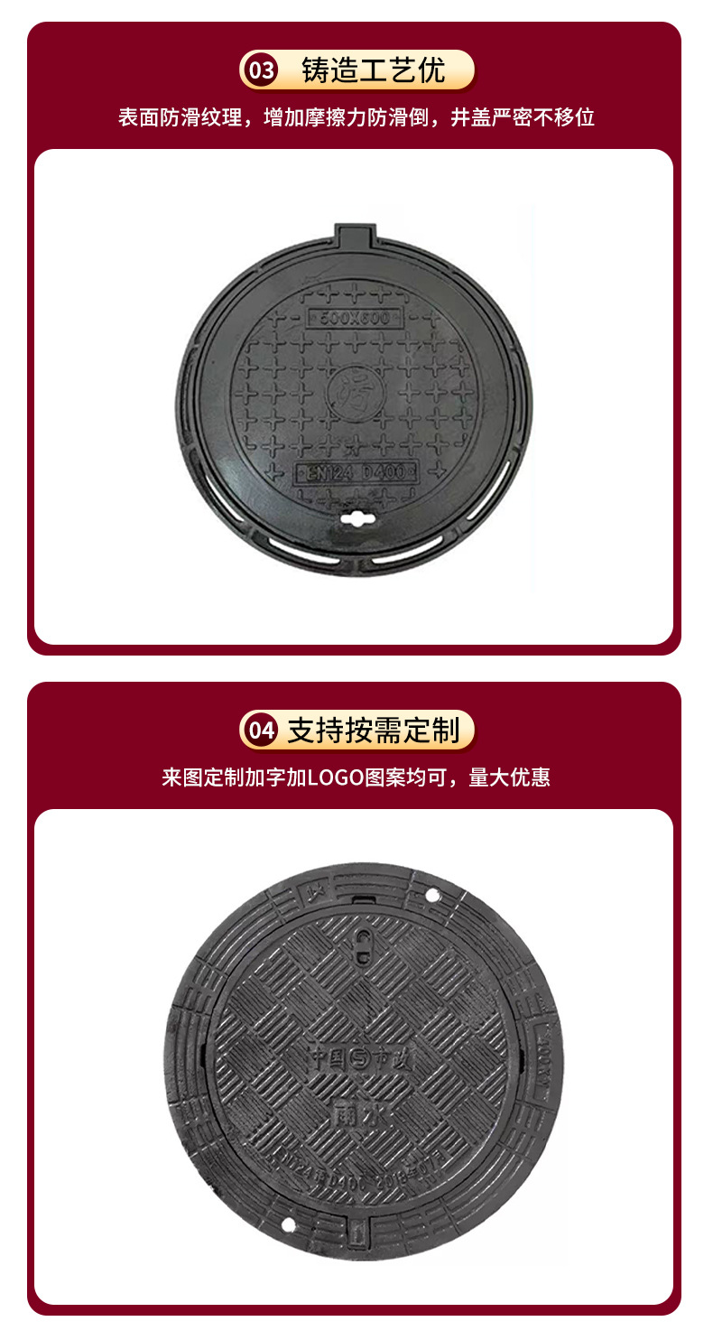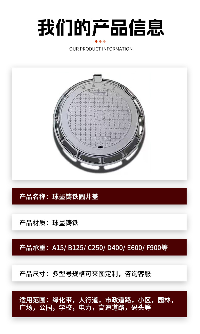 定制球墨铸铁井盖圆700市政污水井盖电力水表绿化带圆形铸铁井盖