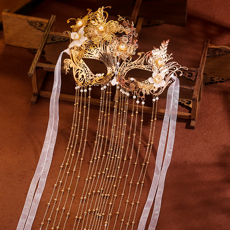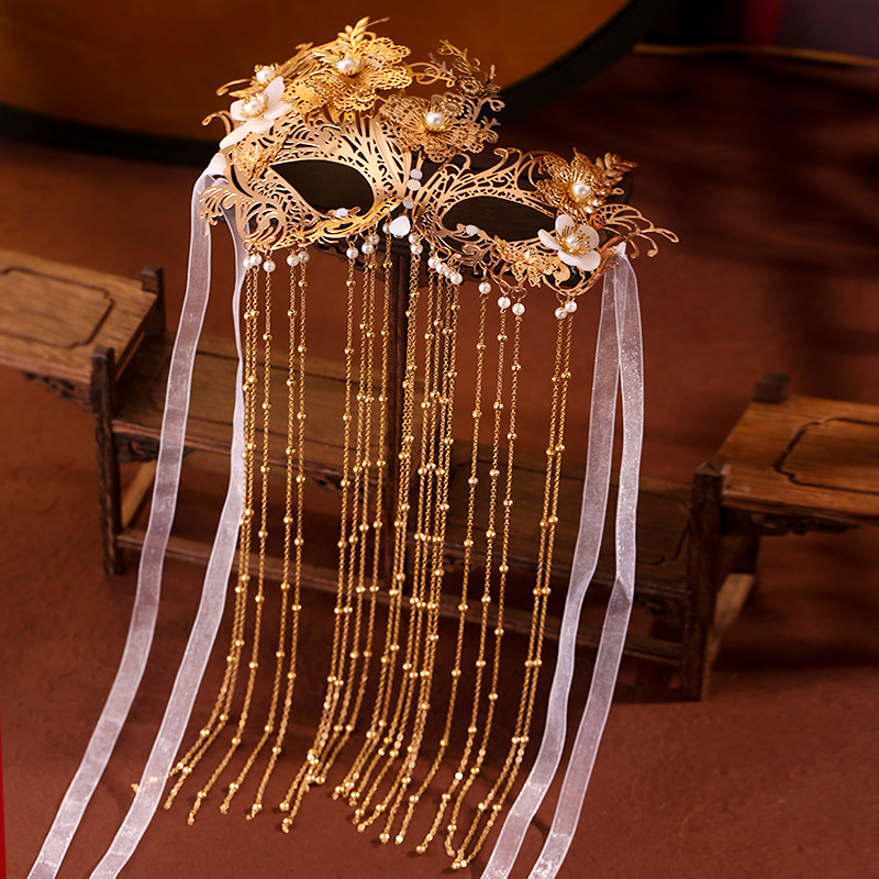 古风面帘面具饰品遮脸长流苏挂耳绑带仙气汉服头饰古装遮面帘配饰