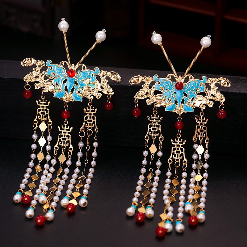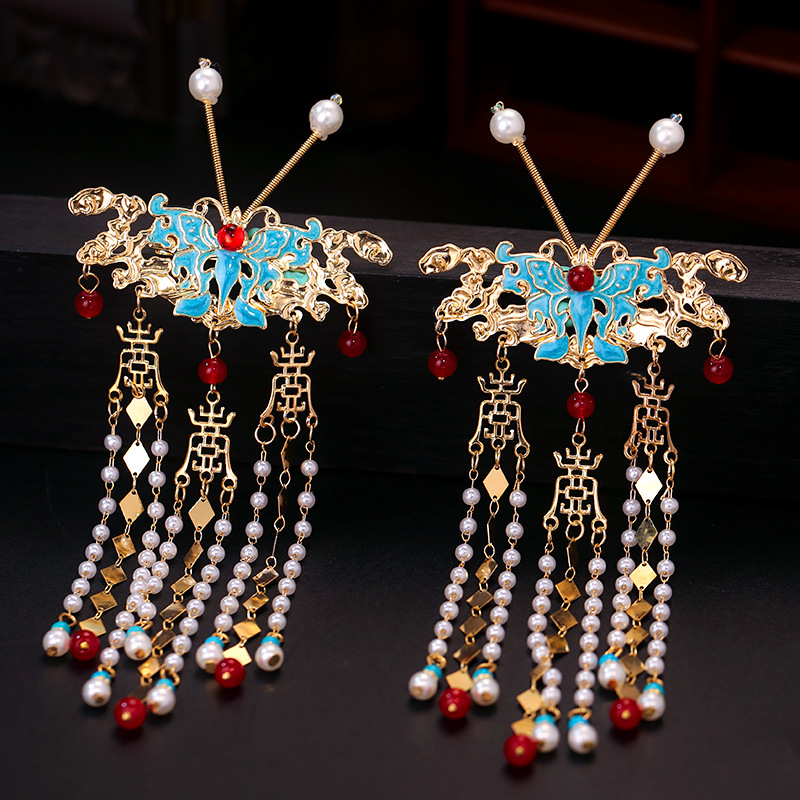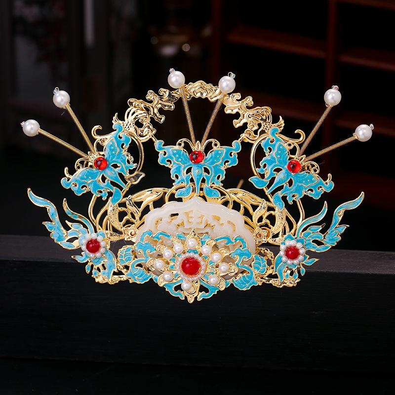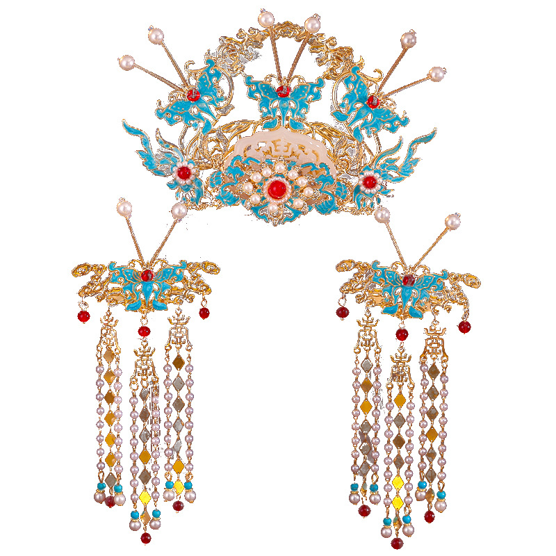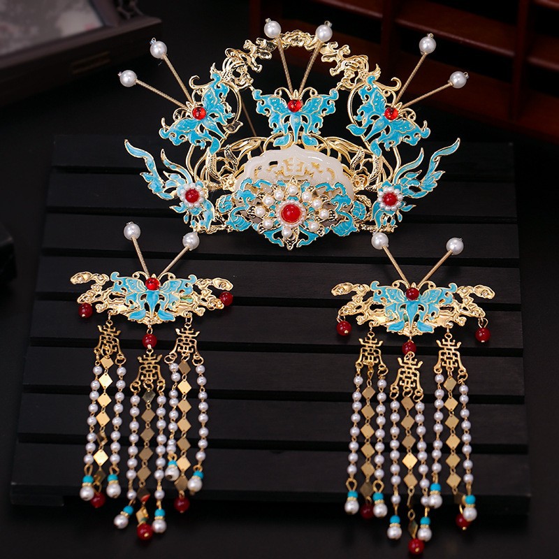 中式古风婚嫁汉服发饰轻飞曼舞套装明制唐风秀禾凤冠发簪钗后压