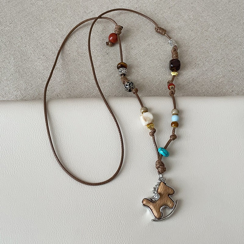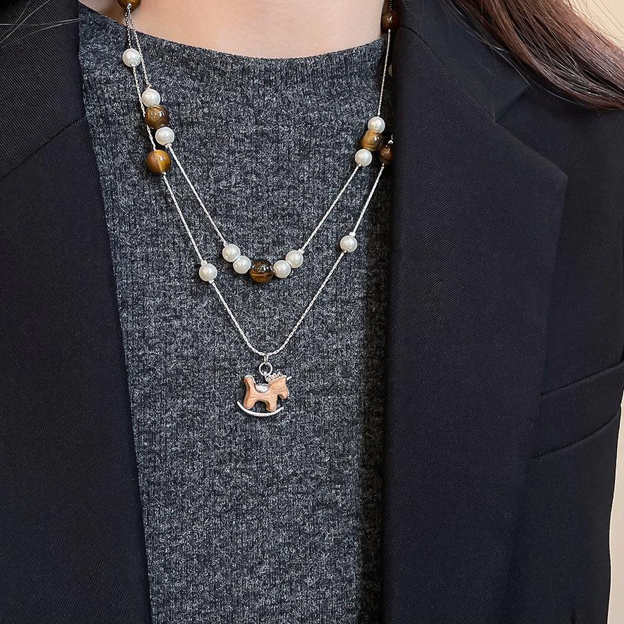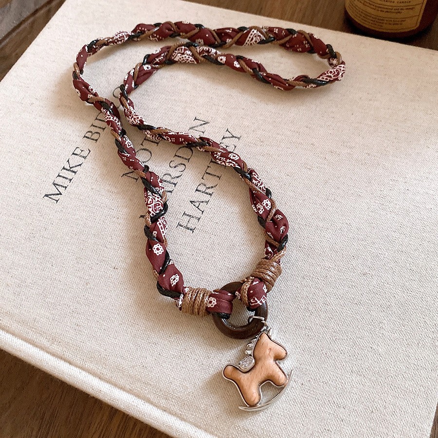 新中式木头小马吊坠项链复古气质百搭毛衣链本命年轻奢小众项饰女