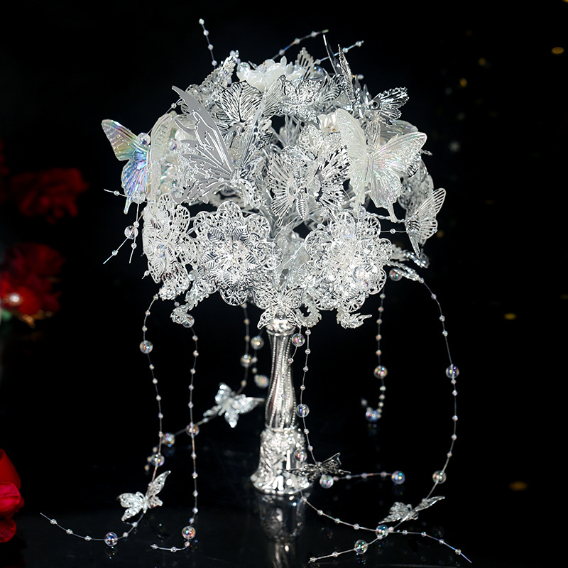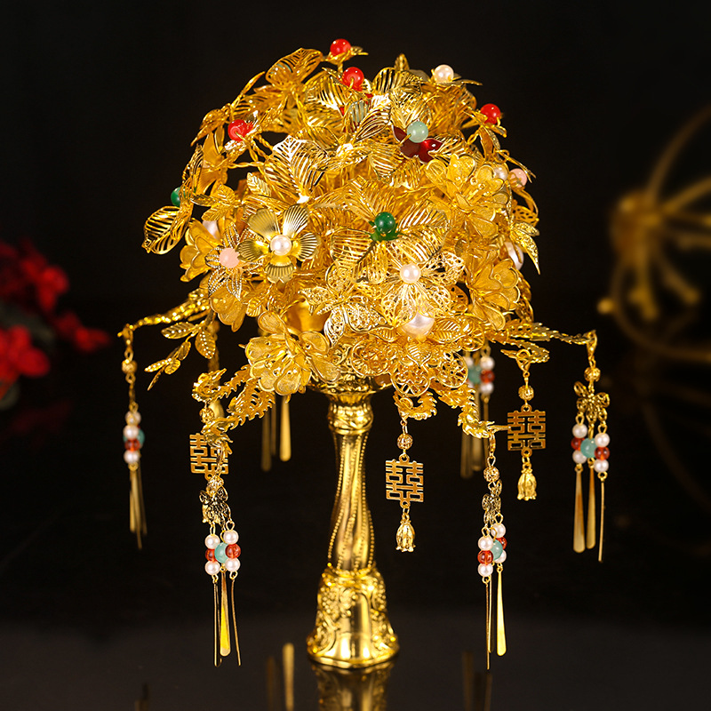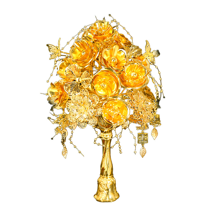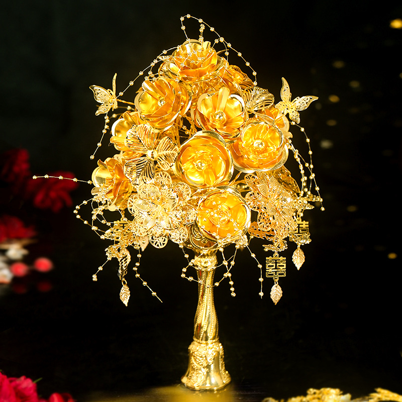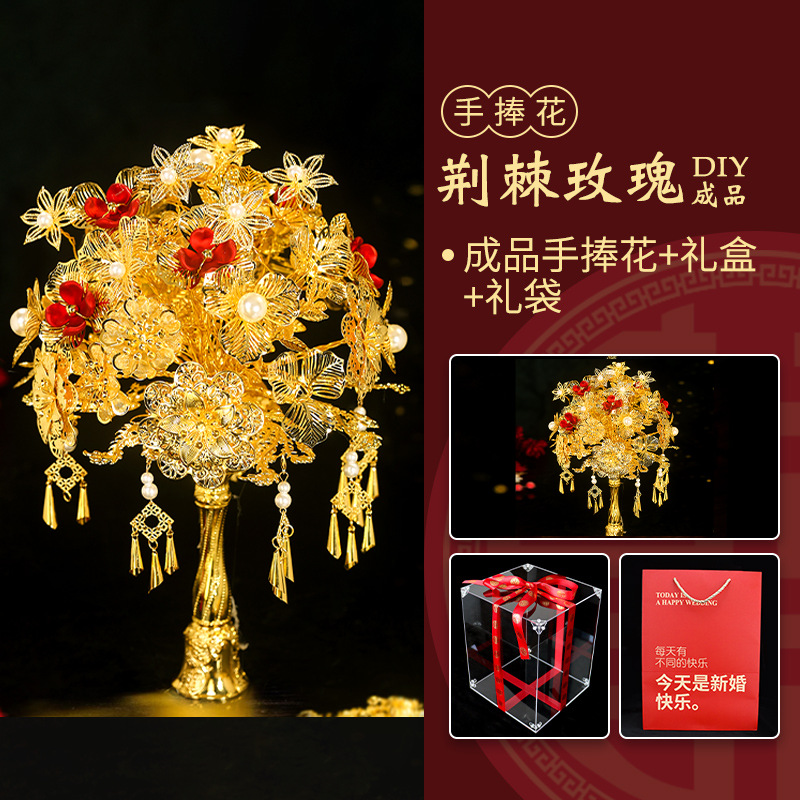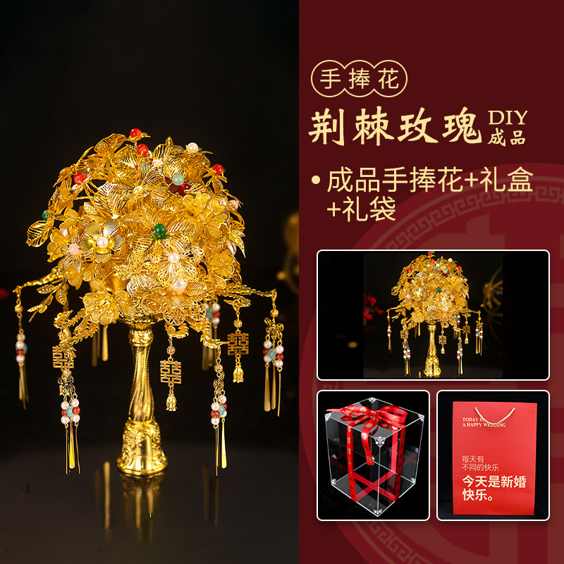 新娘仿金手捧花中式出嫁婚礼秀禾服订婚黄金色手工花成品DIY手花