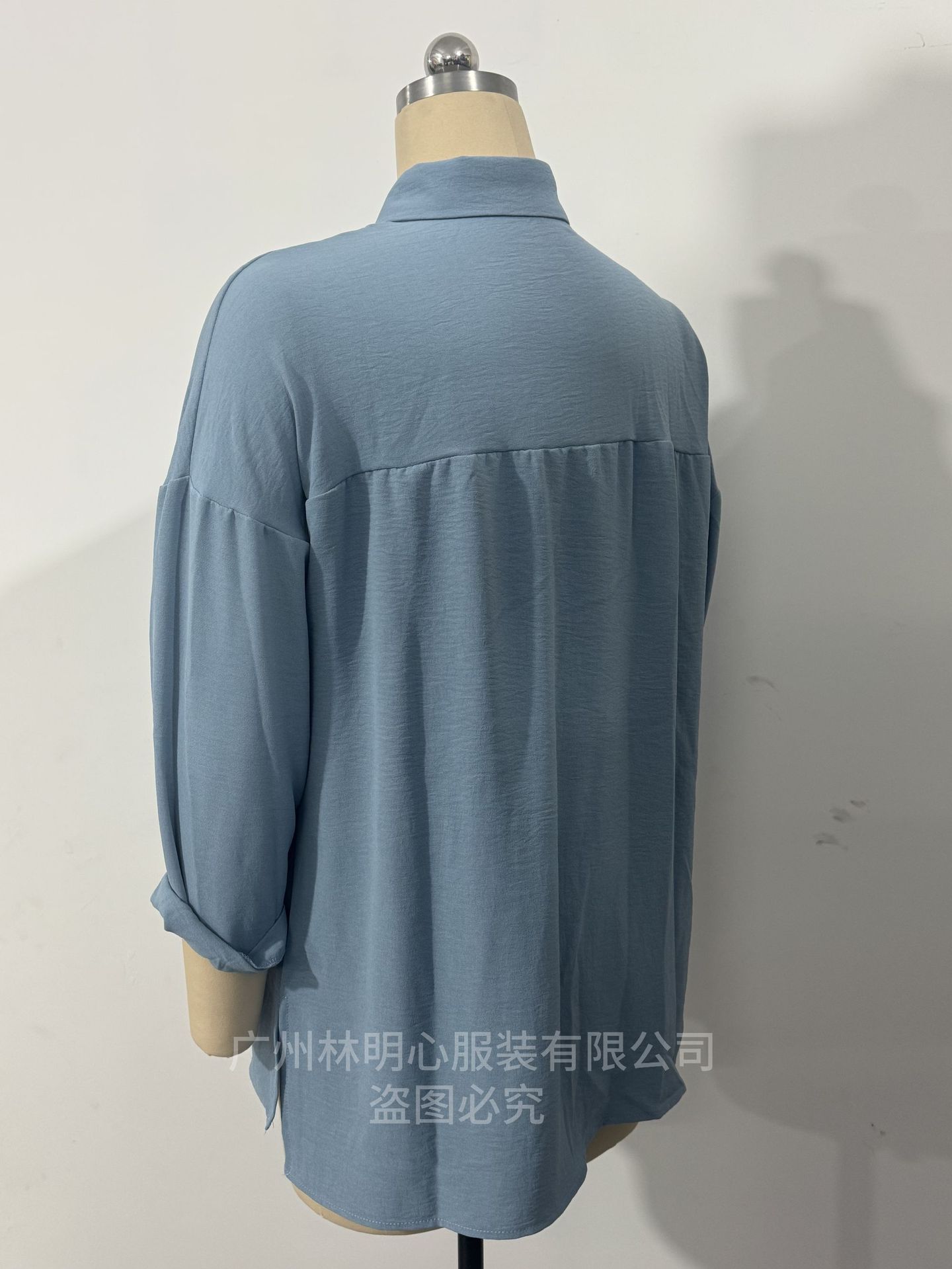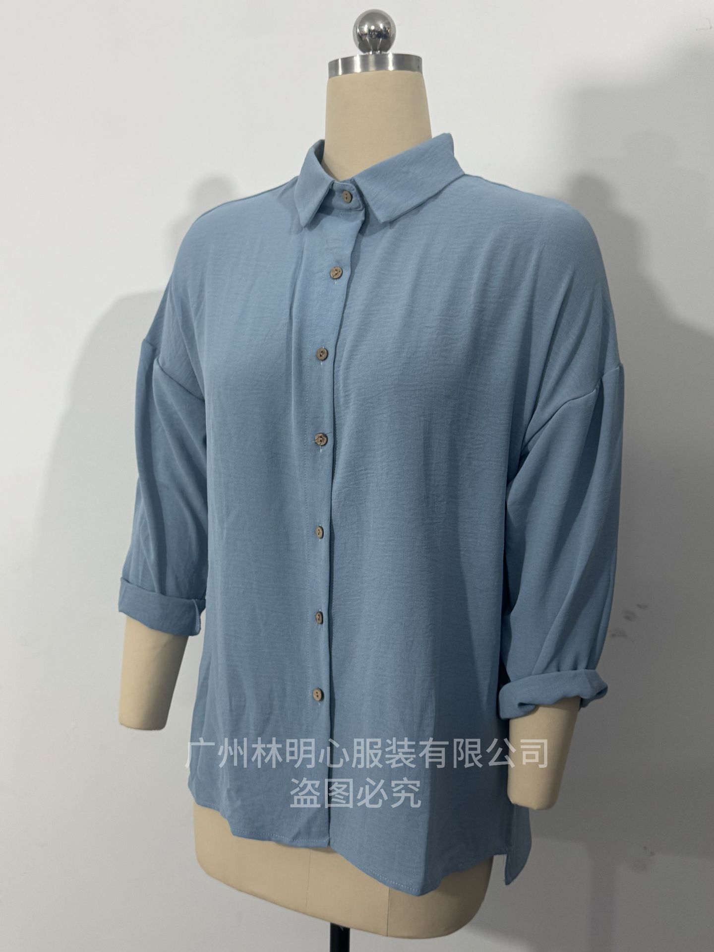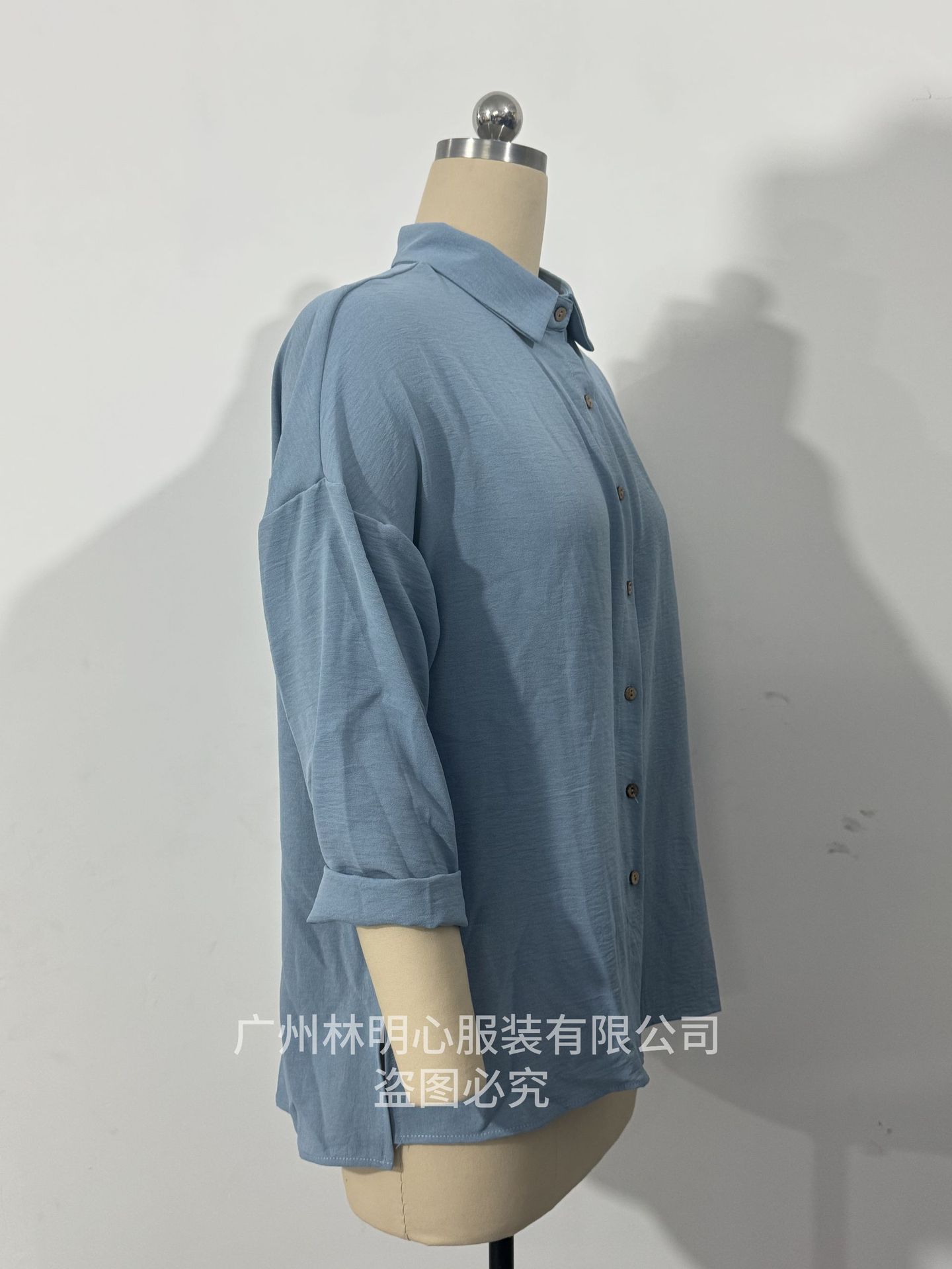 欧美外贸热卖春夏季新款女装翻领宽松开扣衬衫纯色爆款可挽袖上衣
