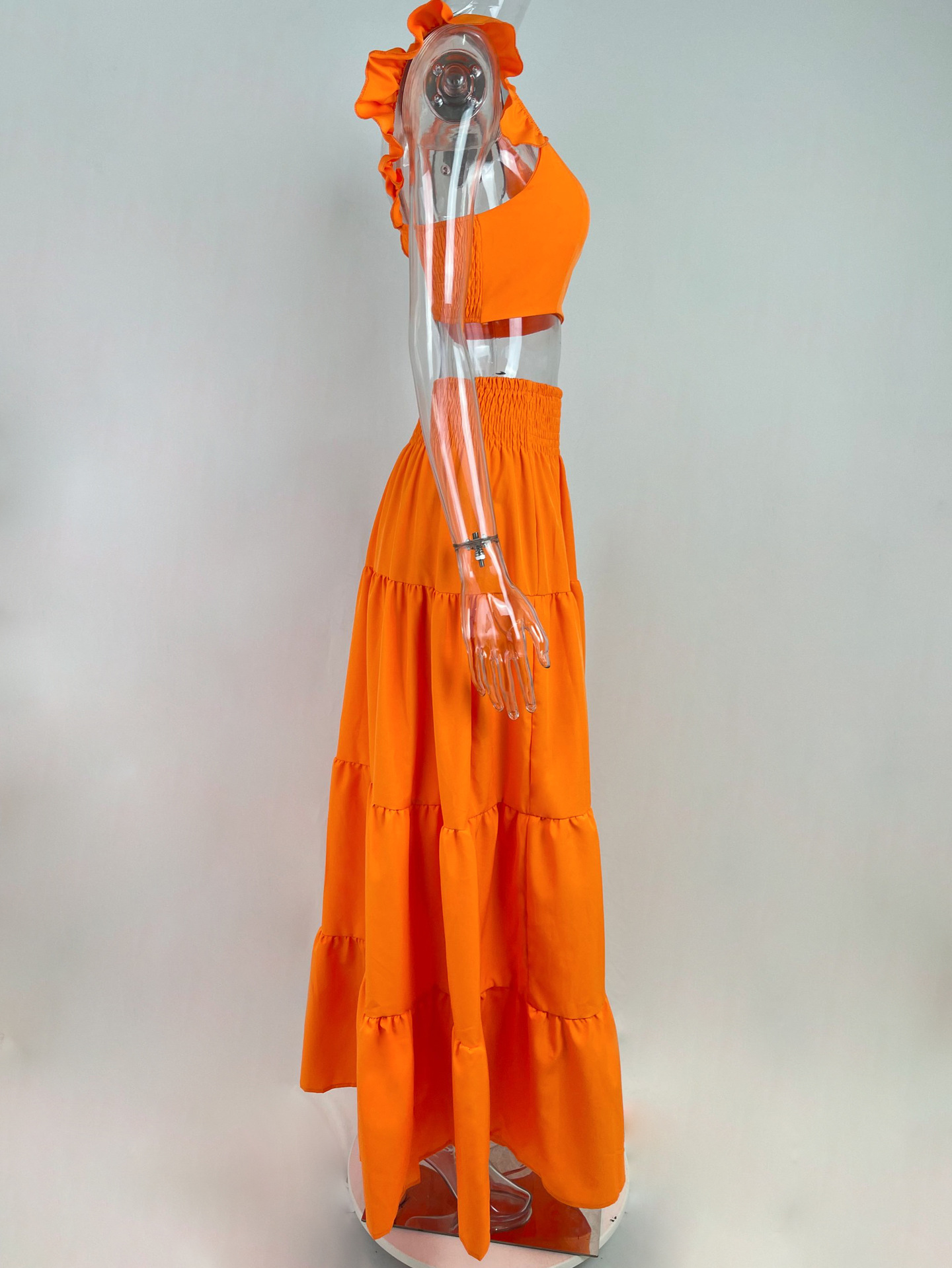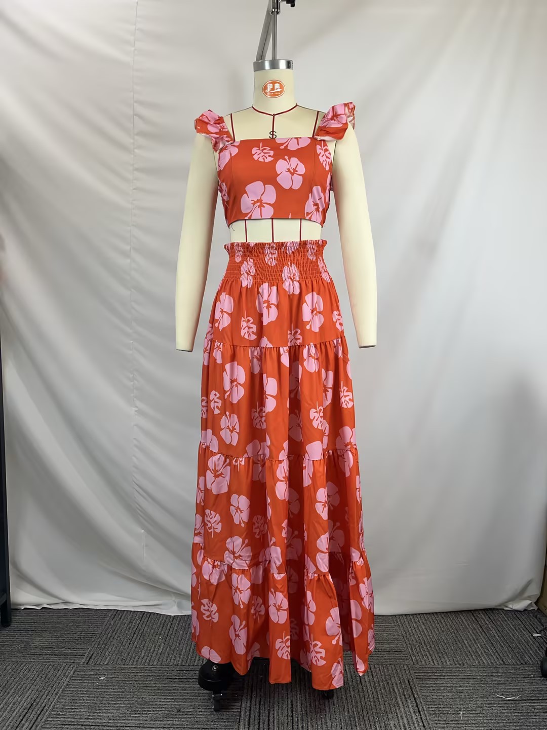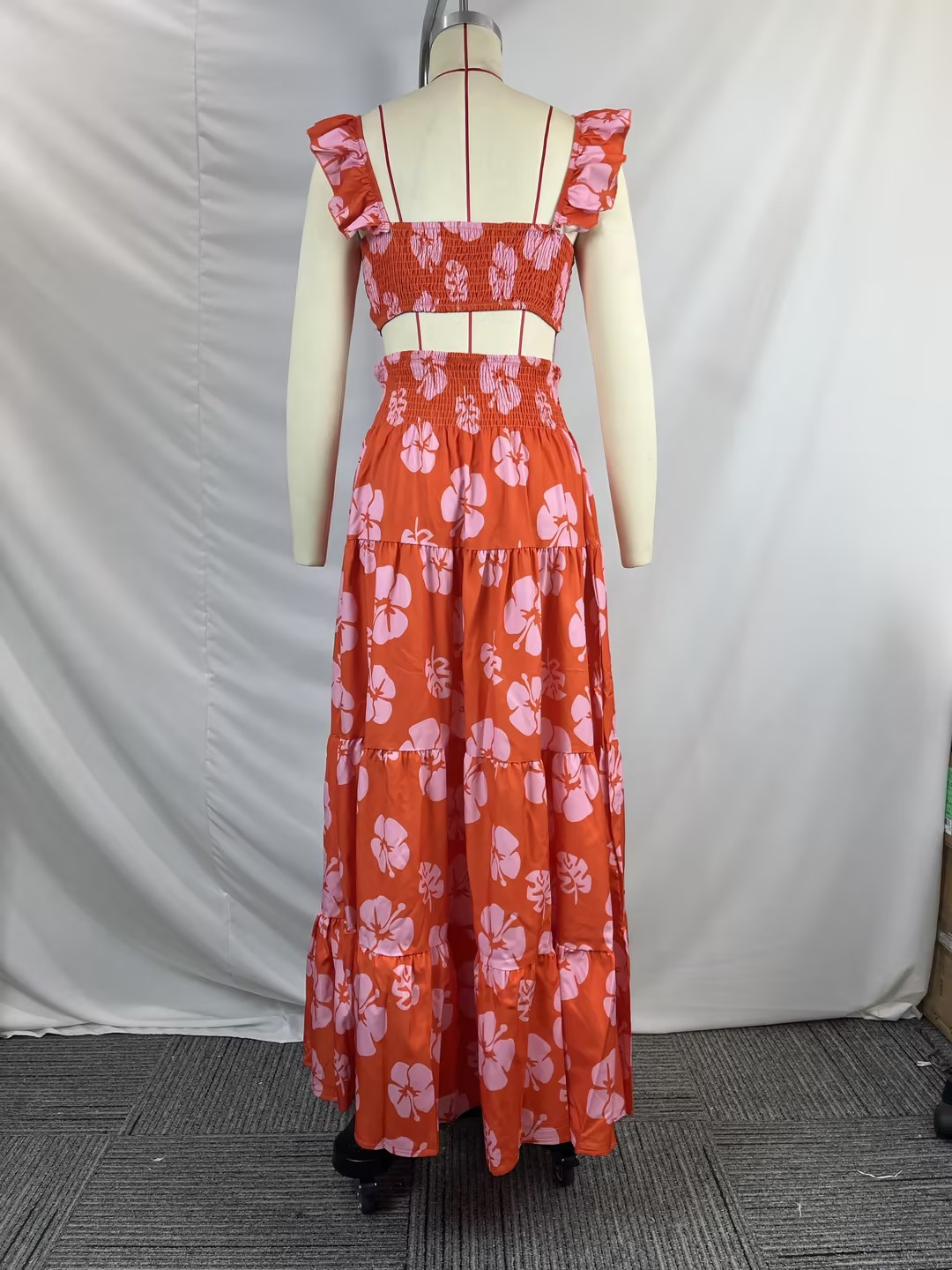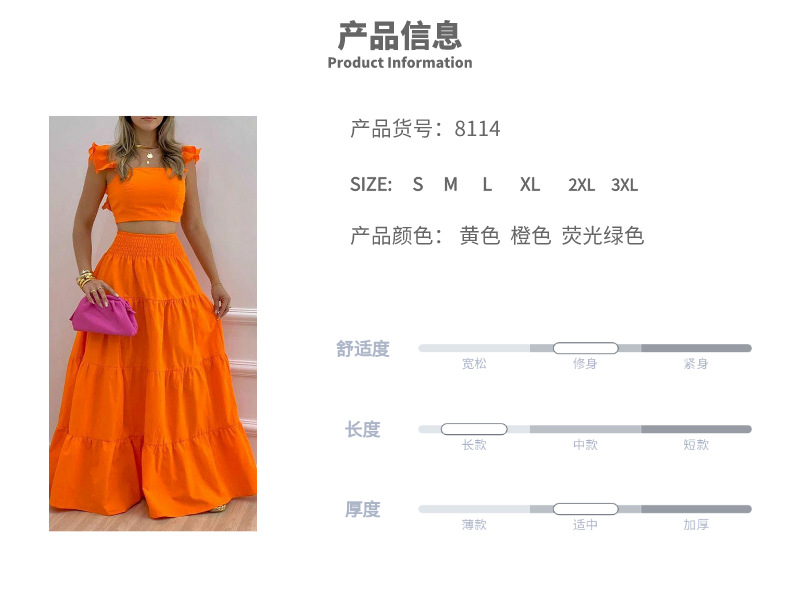 2026春季新款 跨境欧美外贸女装 性感日常休闲纯色拼接吊带裙套装