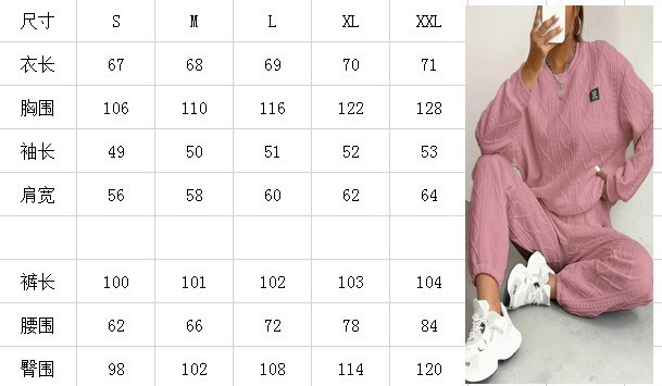 2025春秋季跨境欧美新款女装麻花拼接长袖圆领上衣束脚长裤两件套
