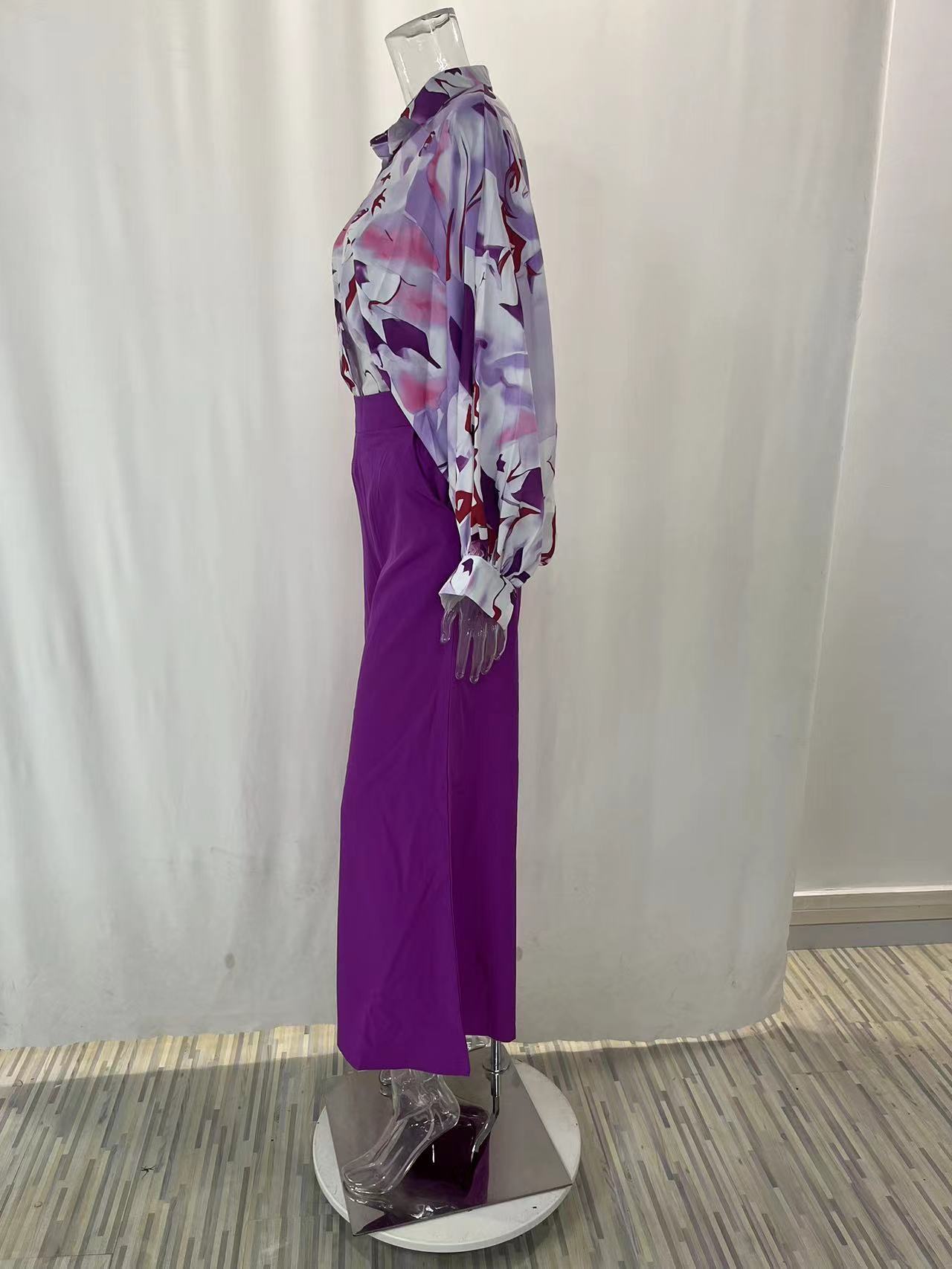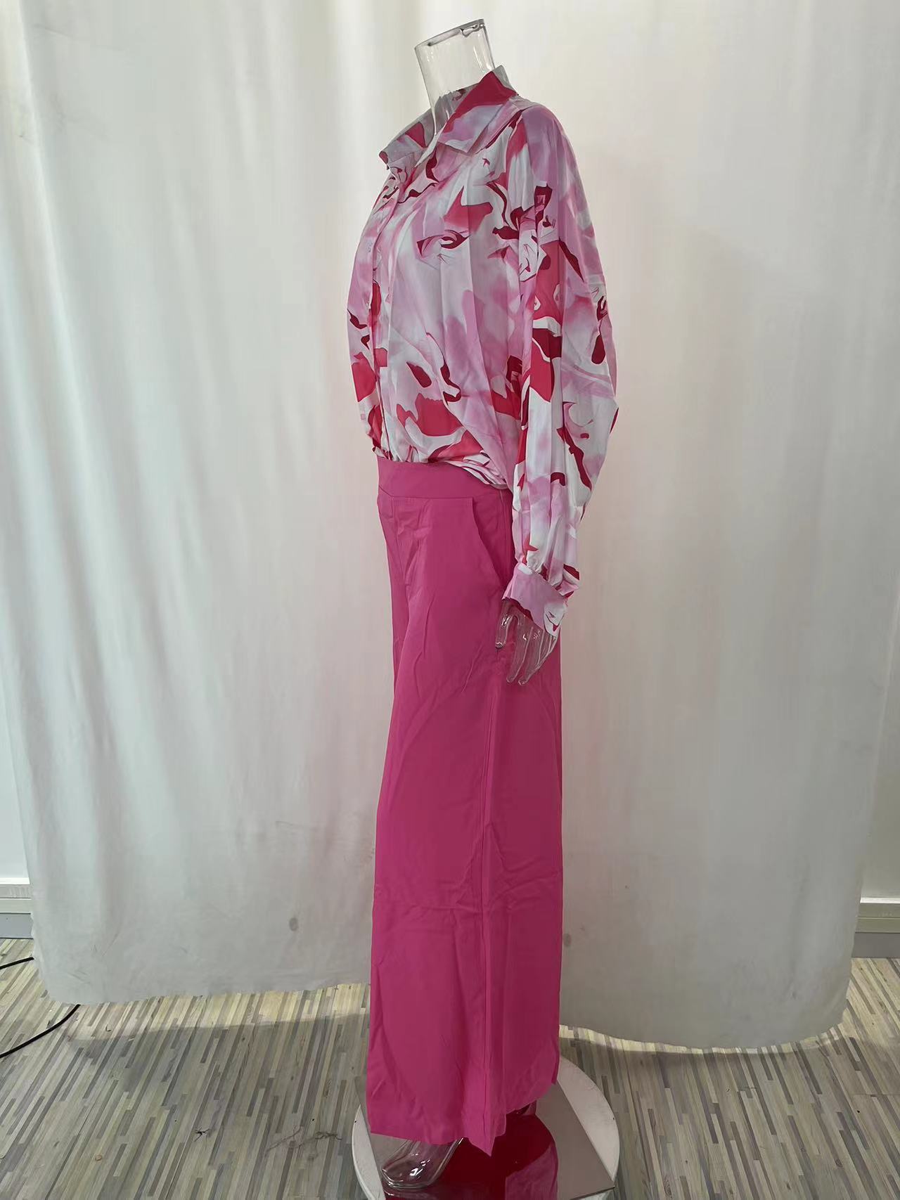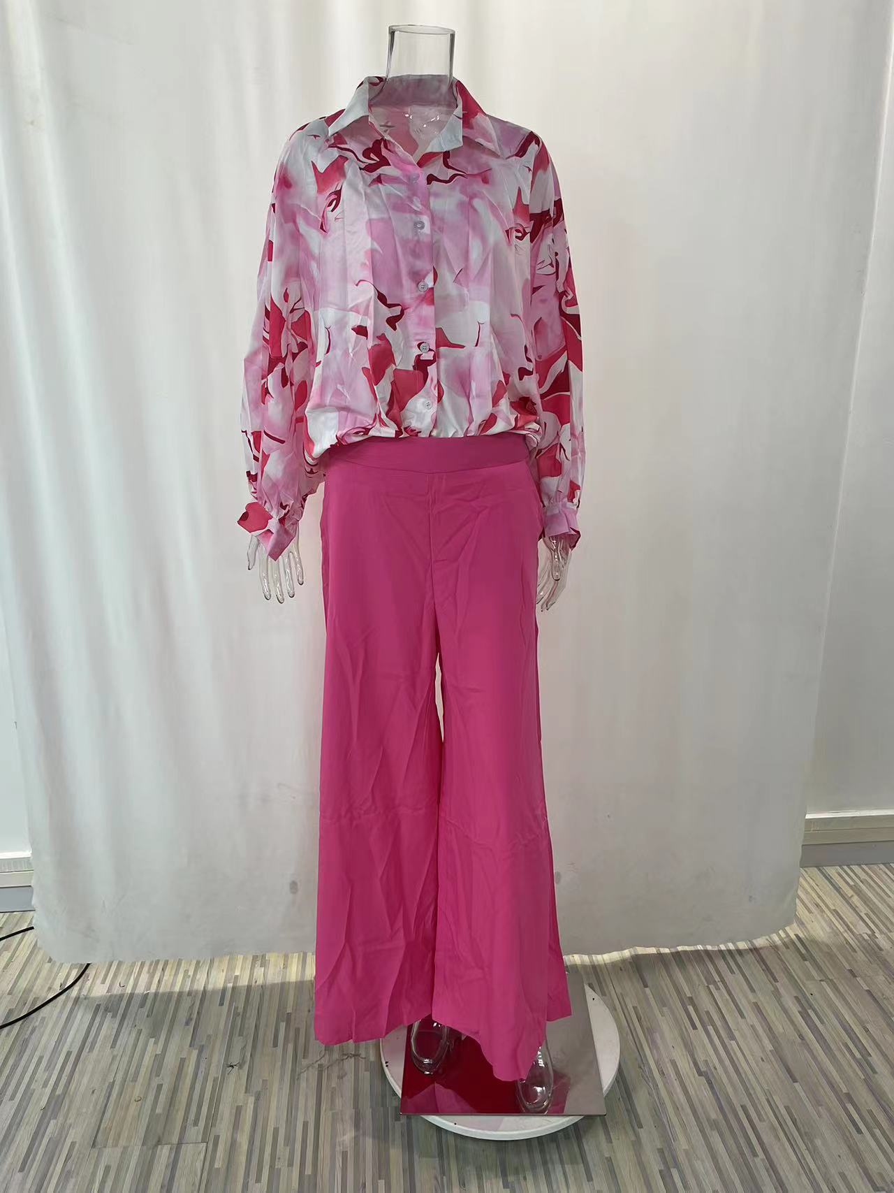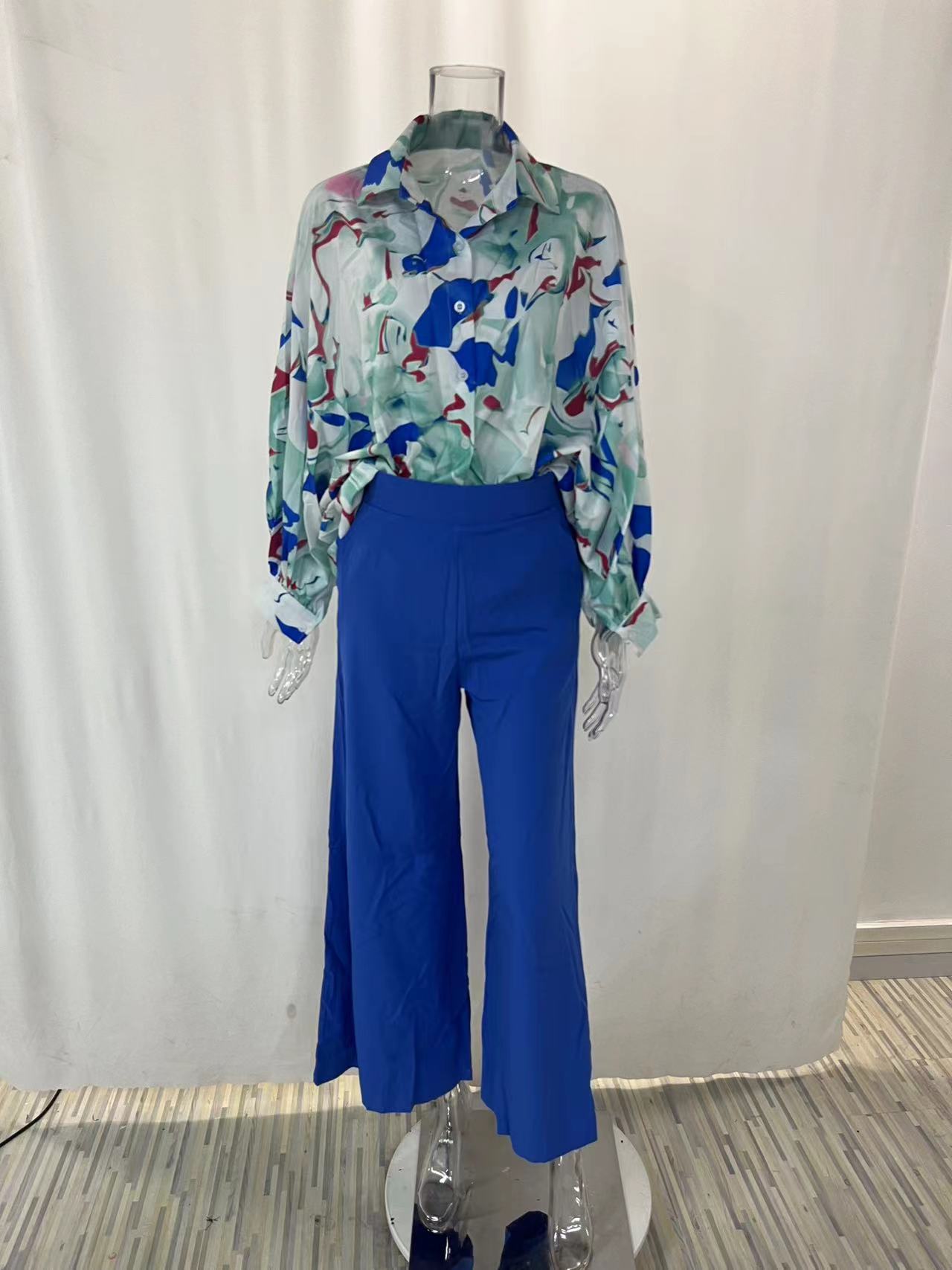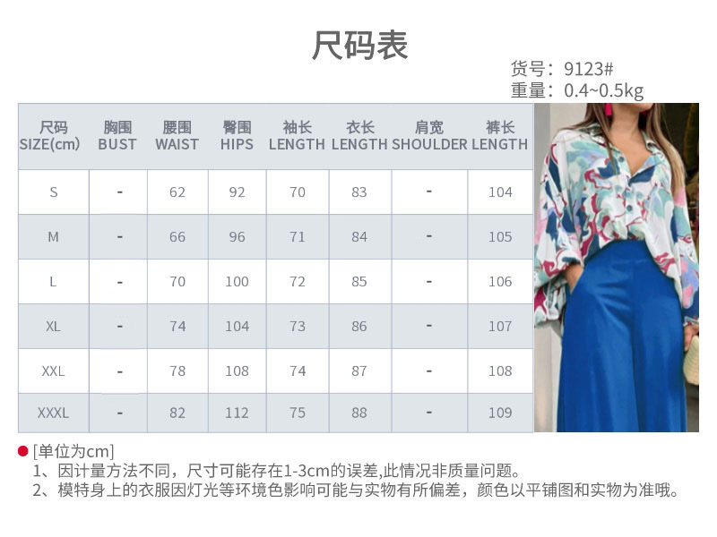 2026春季新款女装 跨境欧美休闲运动套装 时尚印花衬衫阔腿裤套装