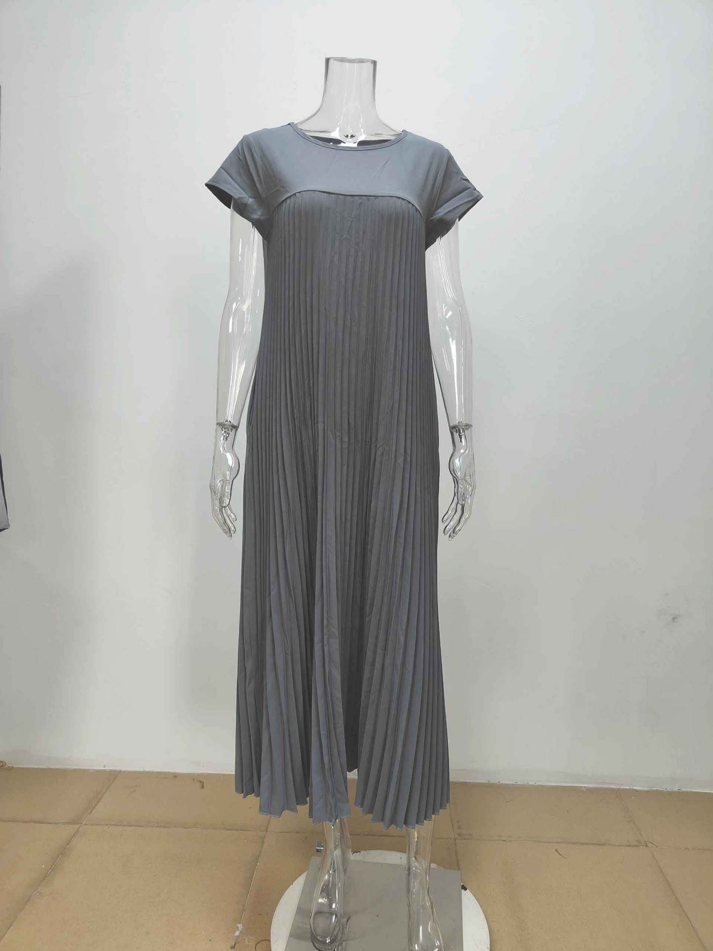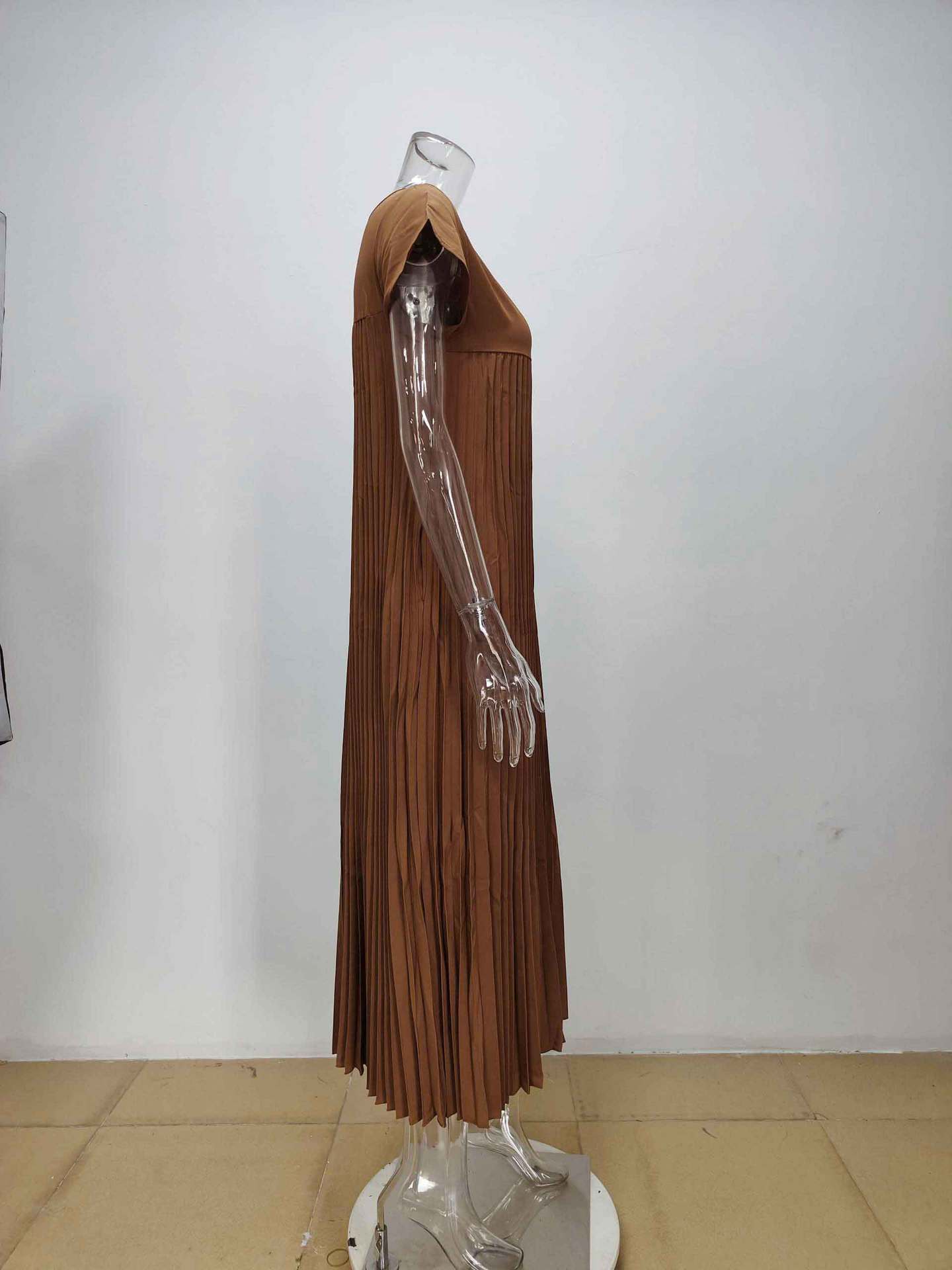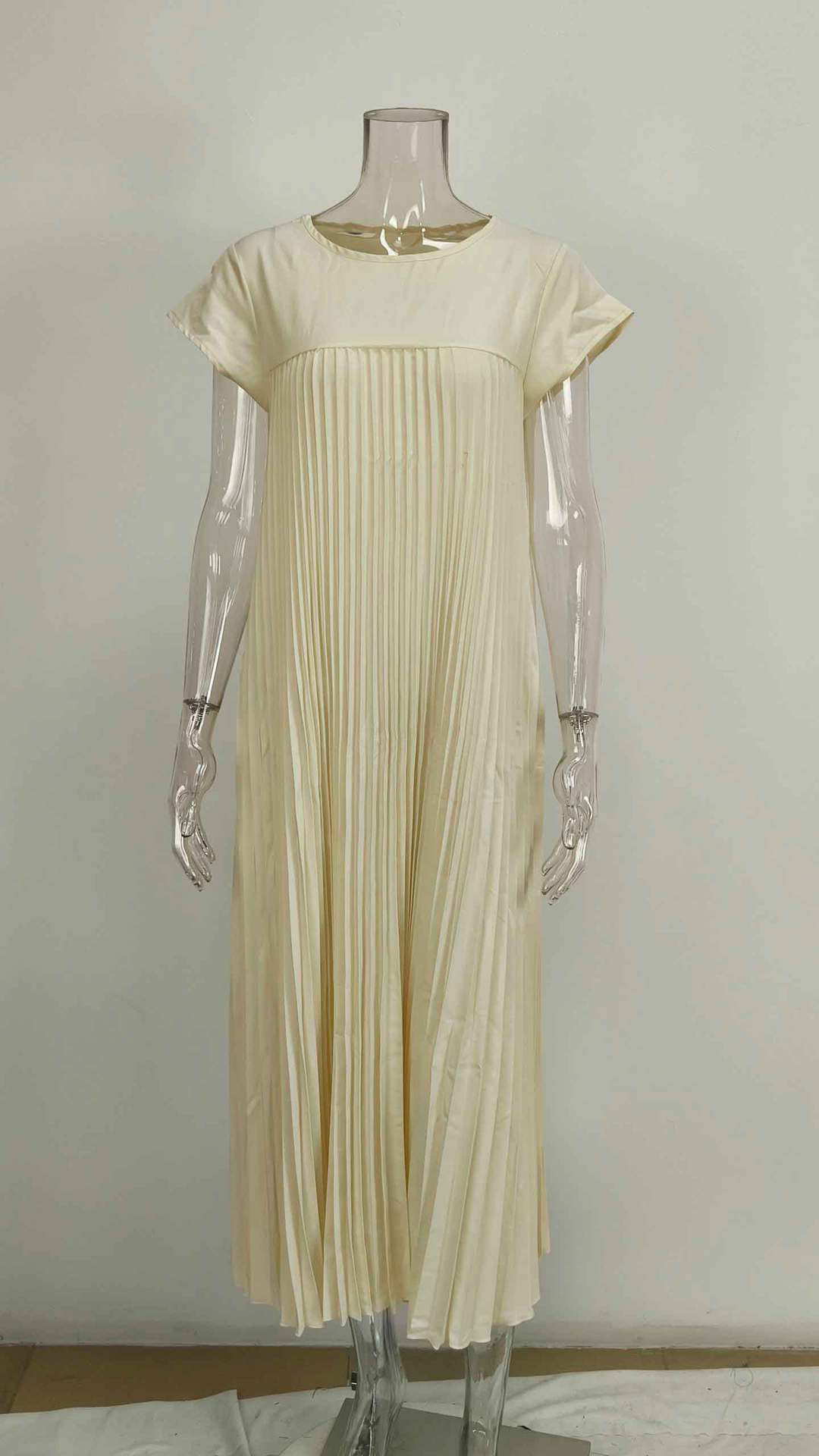 2026春季新款女装 跨境欧美连衣裙子 优雅时尚圆领无袖百褶长裙