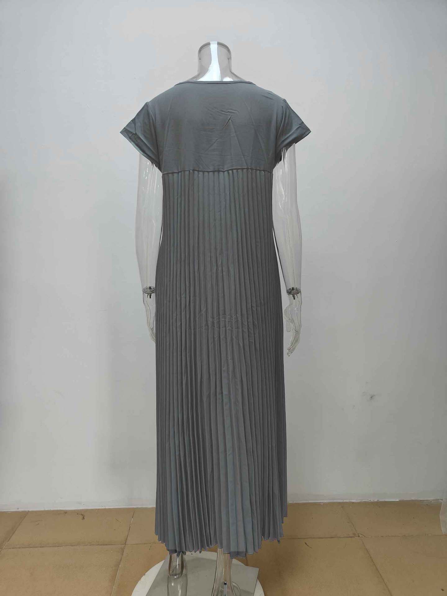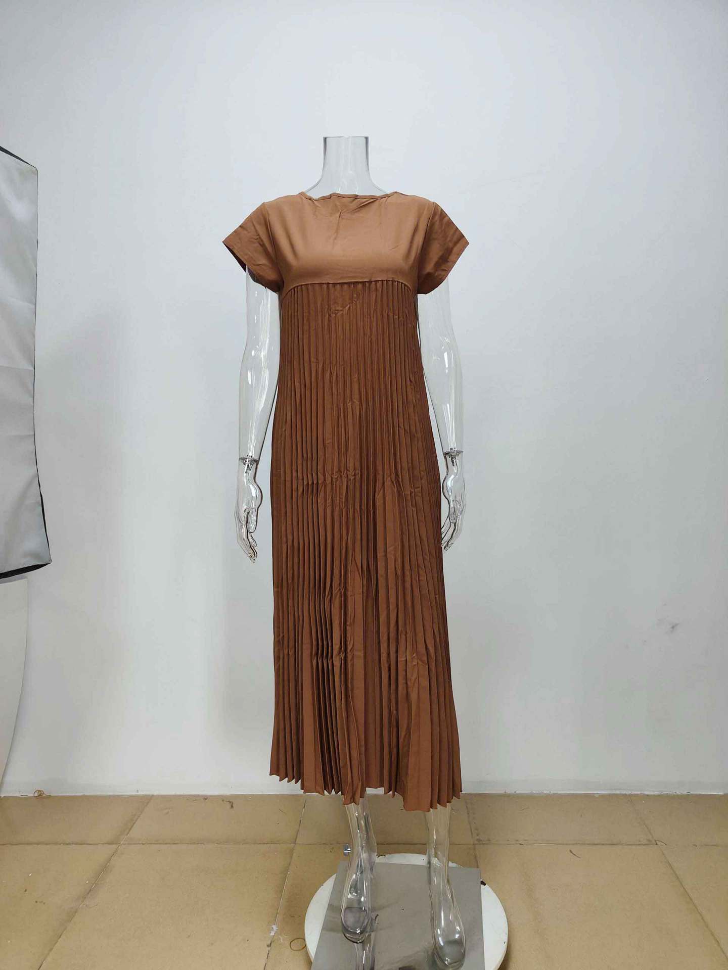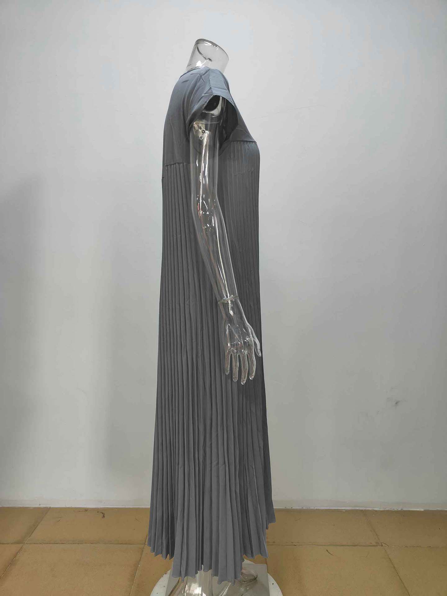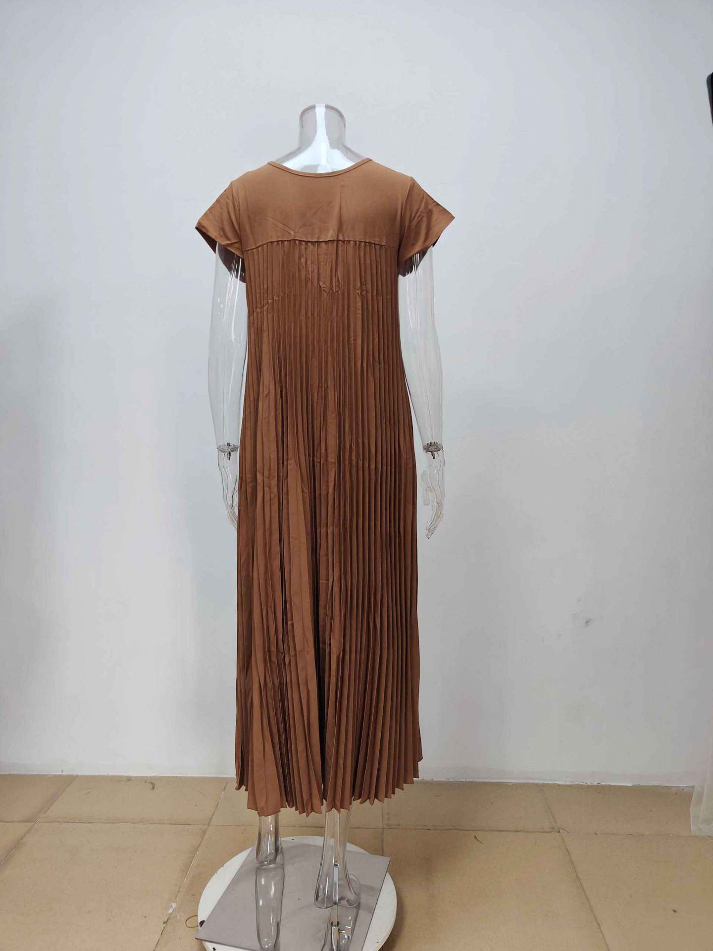 2026春季新款女装 跨境欧美连衣裙子 优雅时尚圆领无袖百褶长裙