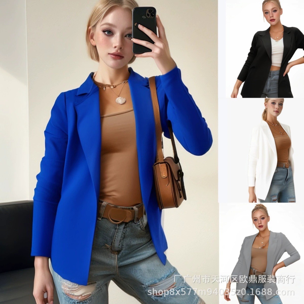 齐色齐码 春秋temu亚马逊女装外套欧美休闲纯色长袖女士西装外套