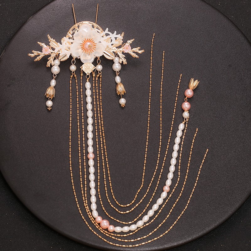 仙气古风汉服头饰长歌行李乐嫣同款压襟步摇后压流苏发钗配饰批发
