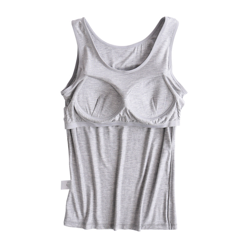 莫代尔带胸垫背心女无钢圈文胸罩杯一体式内衣 运动瑜伽T恤打底衫