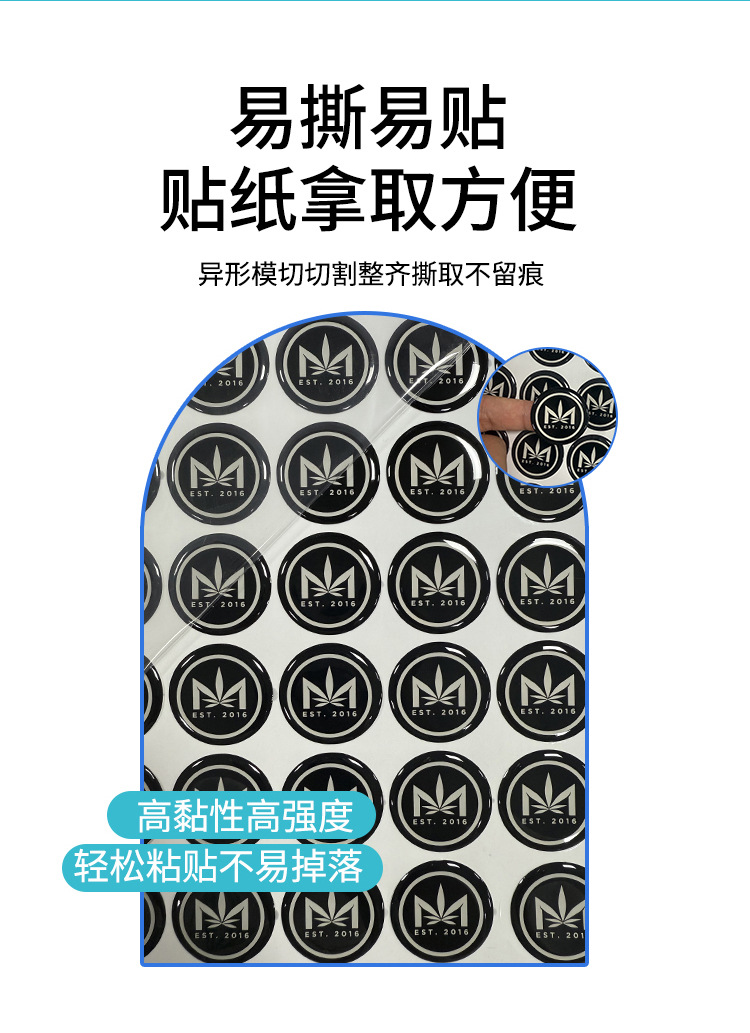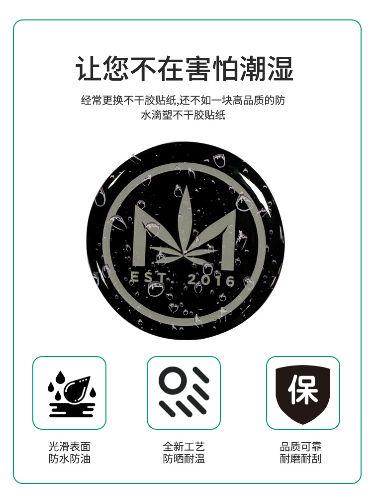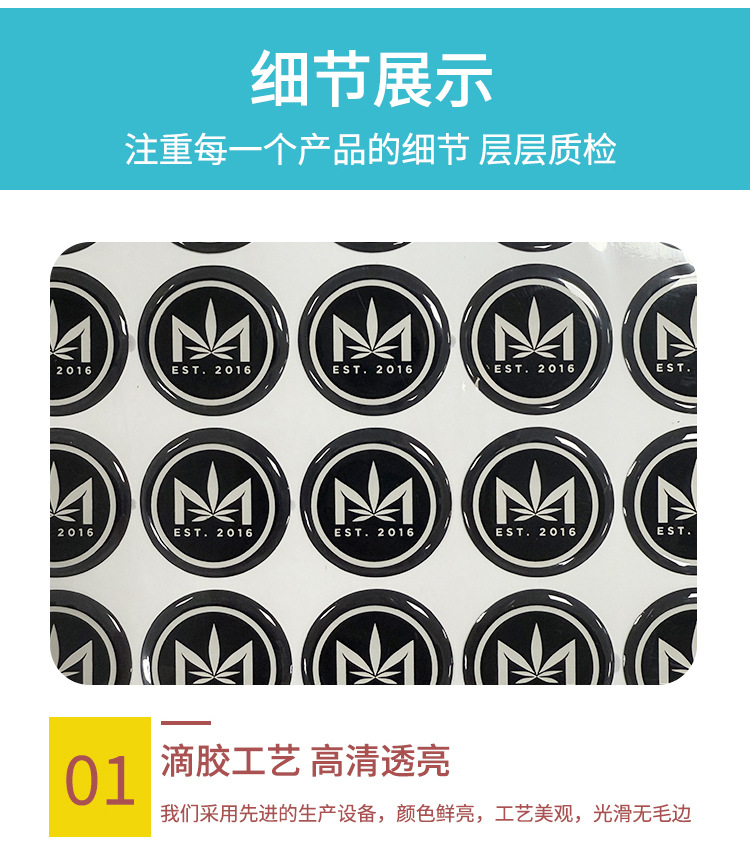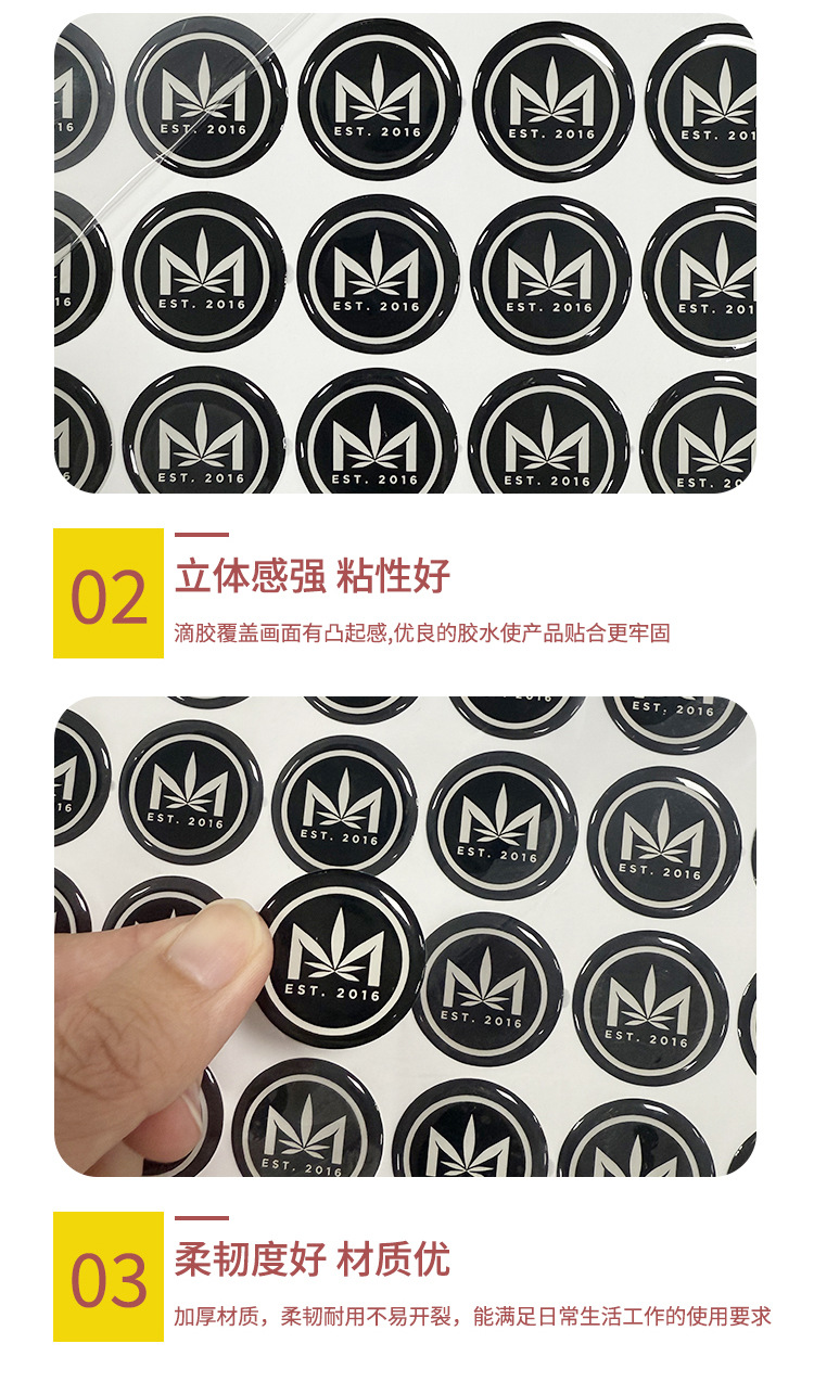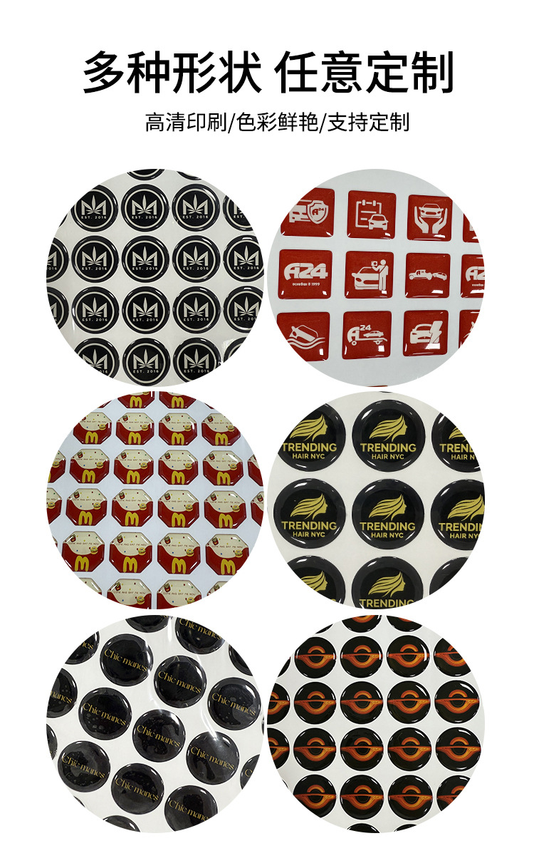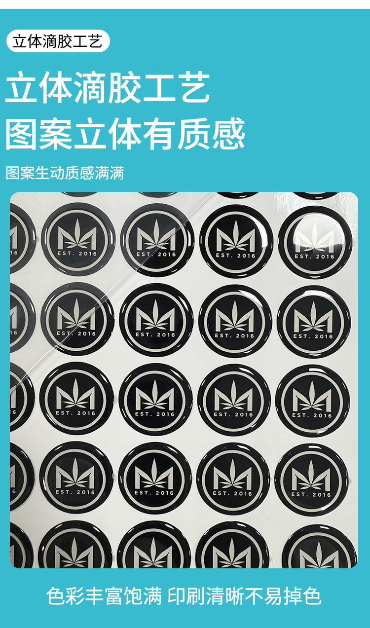 水晶滴胶贴纸不干胶商标水晶滴塑标识标贴立体圆形透明印刷LOGO