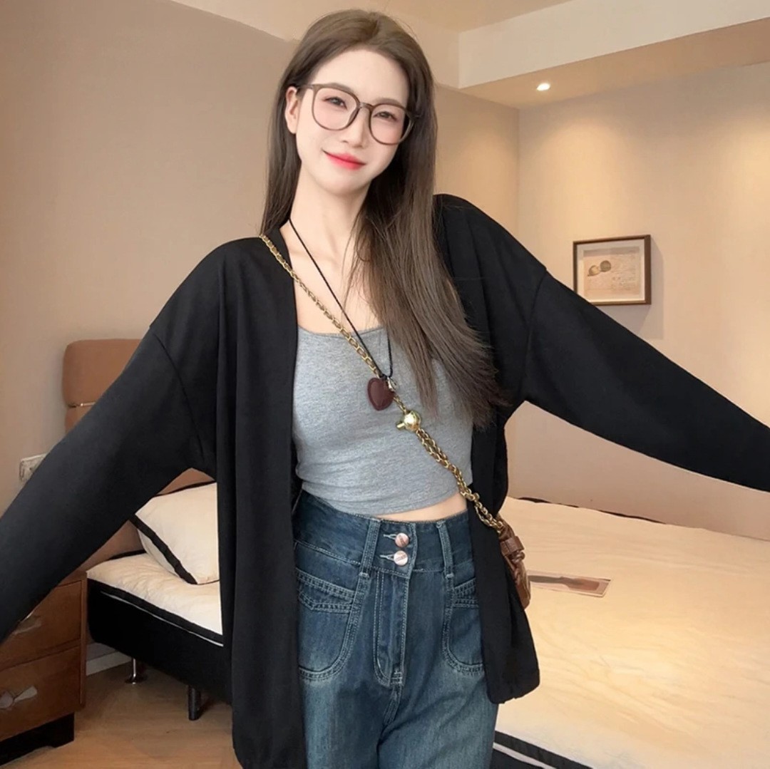 长袖女针织衫春季时尚防晒夏季韩版宽松空调罩衫薄款气质女装开衫