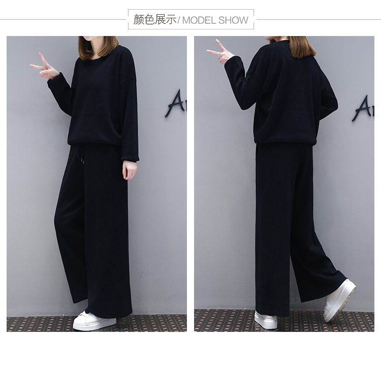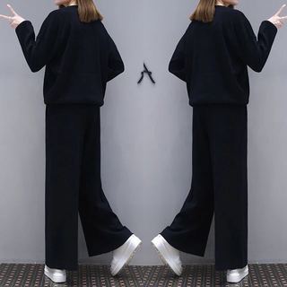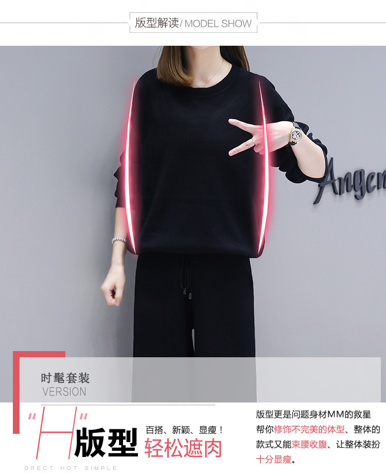 大码女装时尚休闲洋气套装春装新款mm遮肚子藏肉显瘦阔腿裤两件套