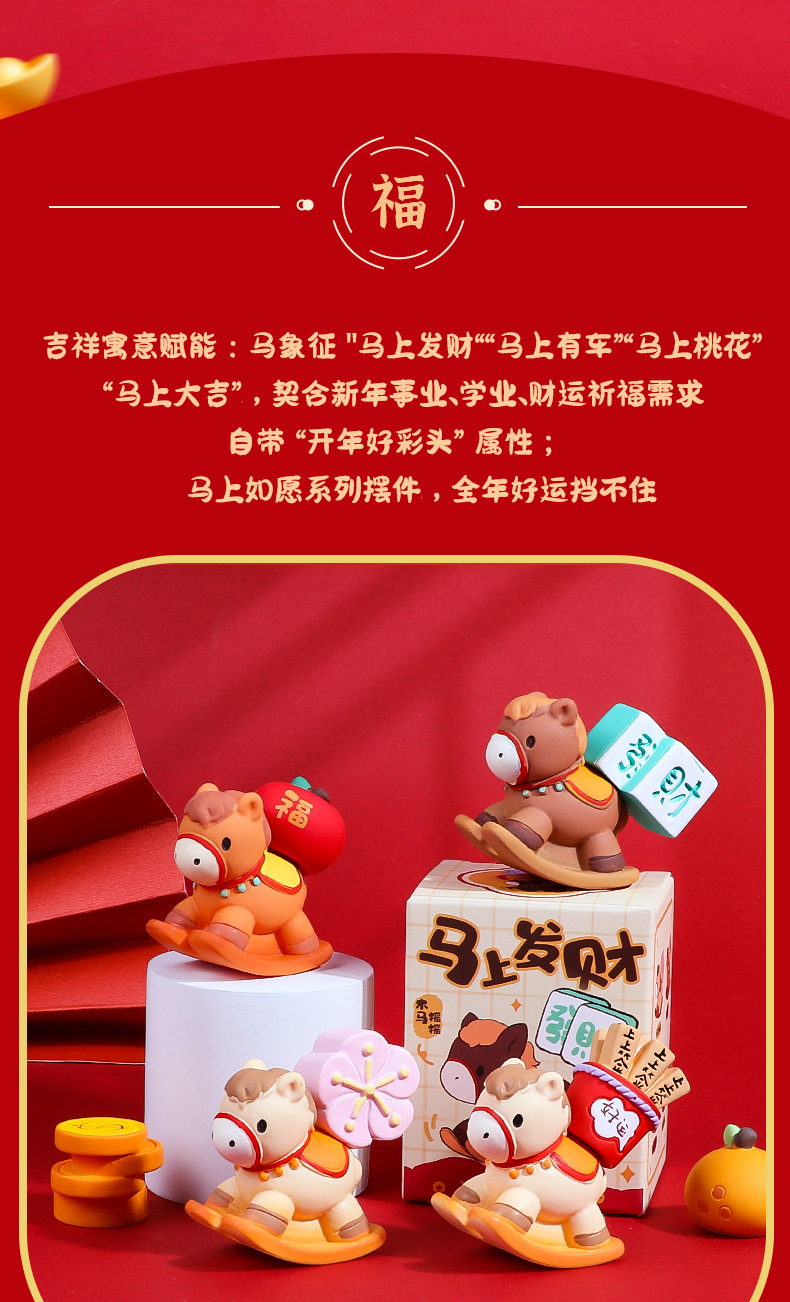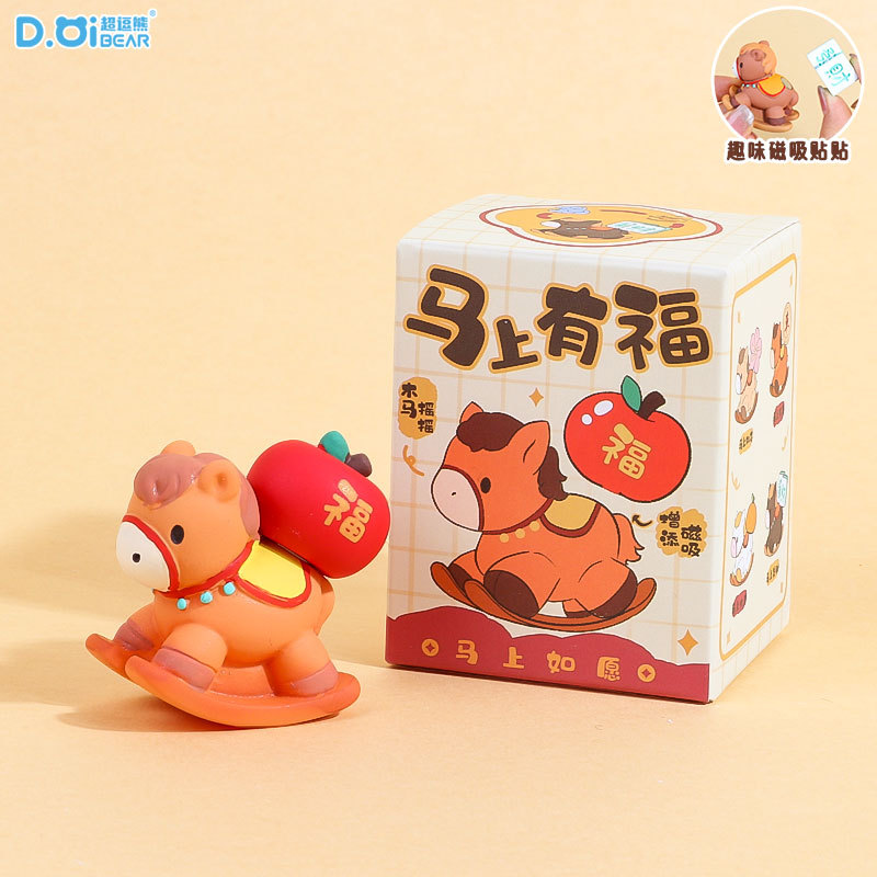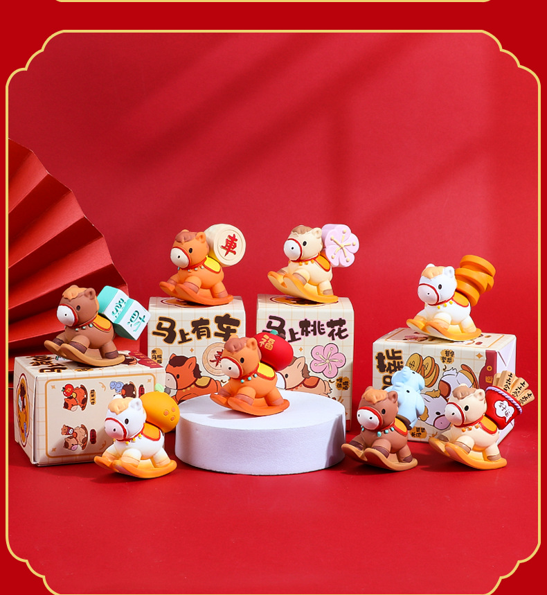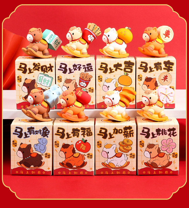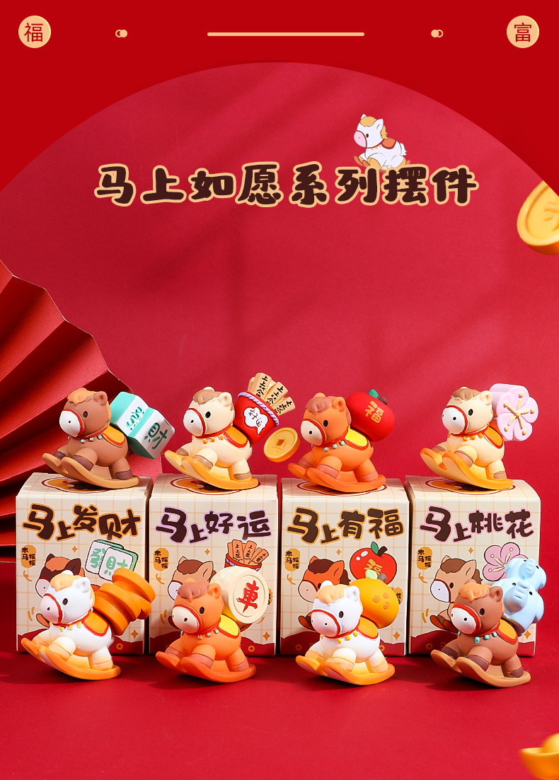 2026新年款马上如愿磁吸公仔盲盒马年生肖新年礼品树脂家居摆件