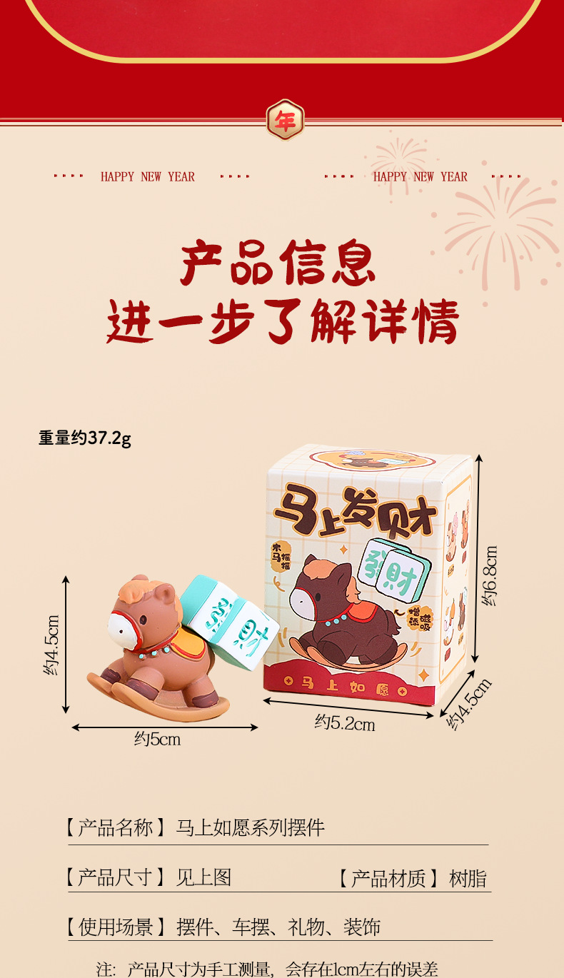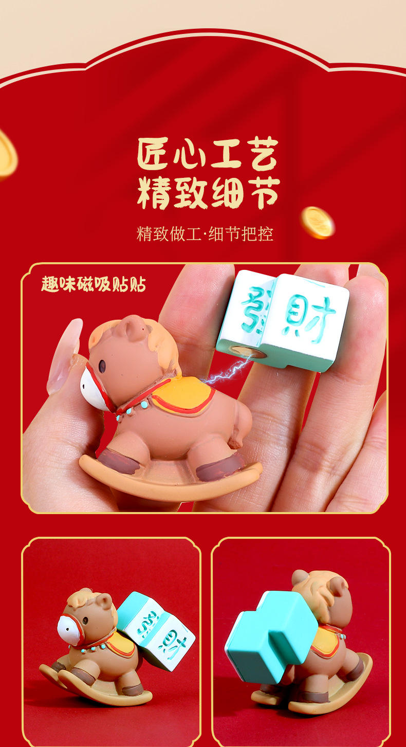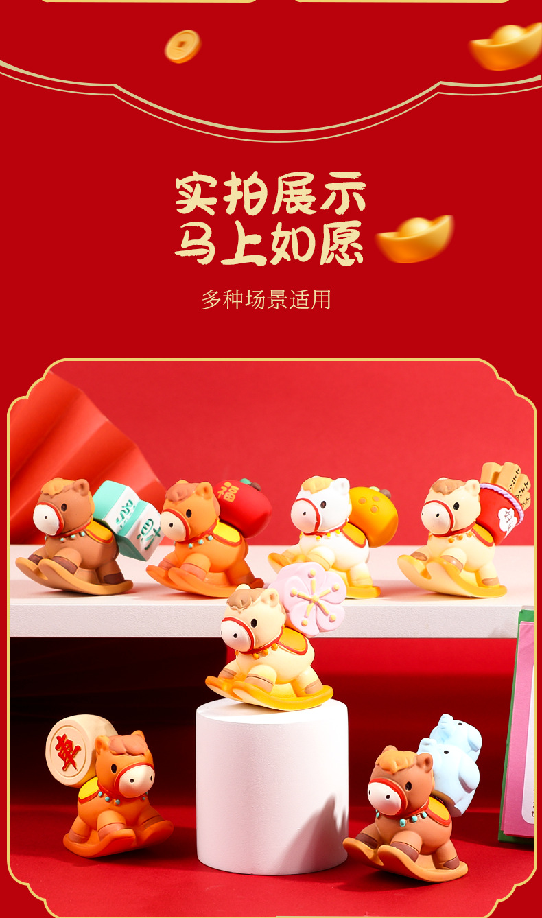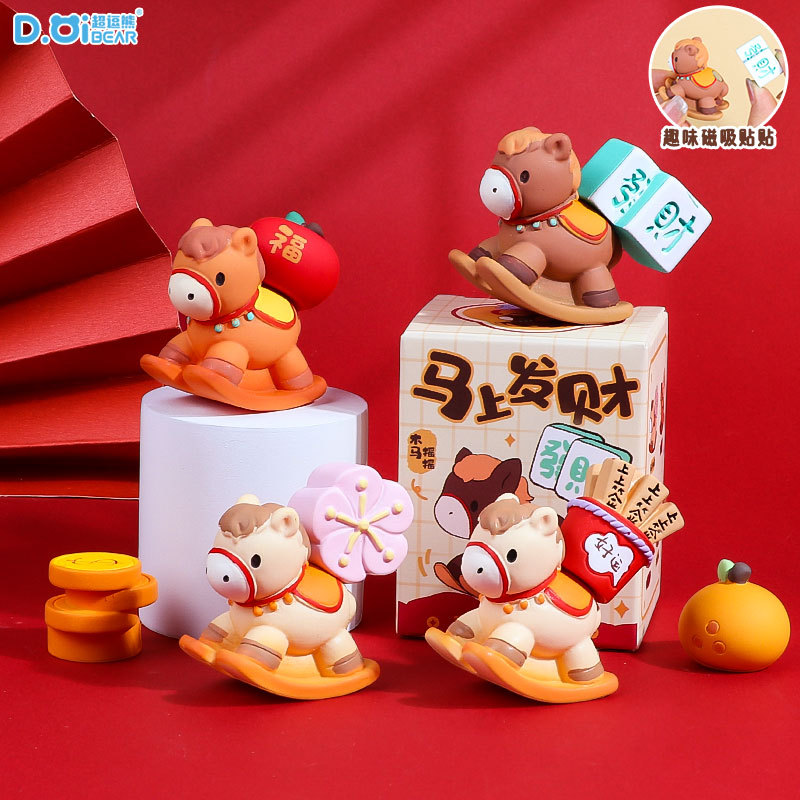 2026新年款马上如愿磁吸公仔盲盒马年生肖新年礼品树脂家居摆件